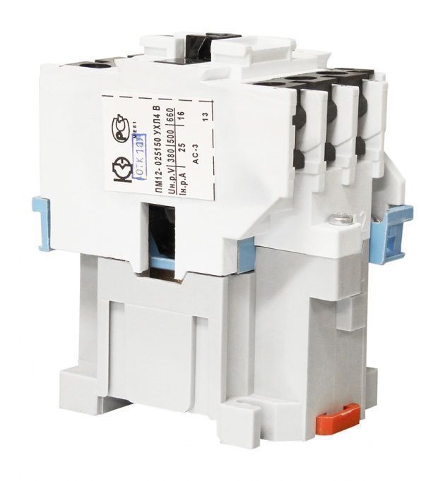 Пускатели электромагнитные серии ПМ12 предназначены для применения главным образом в стационарных установках для дистанционного пуска непосредственным подключением к сети, остановки и реверсирования трехфазных асинхронных электродвигателей с короткозамкнутым ротором при напряжении до 660 В переменного тока частоты 50 и 60 Гц. Для ограничения коммутационных перенапряжений, возникающих при отключении катушек управления, на пускатели серий ПМ12 могут устанавливаться ограничители перенапряжений ОПН. Пускатели, комплектуемые ограничителями перенапряжений, пригодны для работы в системах управления с применением микропроцессорной техники. Для защиты трехфазных асинхронных двигателей с короткозамкнутым ротором от перегрузок недопустимой продолжительности и от токов, возникающих при обрыве одной из фаз, предназначены трехполюсные электротепловые токовые реле серии РТТ. Структура условного обозначения электромагнитных пускателей ПМ12: ПМ12 - Х Х Х Х Х Х Х Х 1. Обозначение серии: 2. Цифры, указывающие условное обозначение номинального тока: 010 —10 А 025 —25 А 040 —40 А 063 —63 А 100 —100 А 160 —160 А 250 —250 А 3. Цифра, указывающая условное обозначение пускателей по назначению и наличию теплового реле: 1 - нереверсивный пускатель без теплового реле 2 - нереверсивный пускатель с тепловым реле 5 - реверсивный пускатель без теплового реле, с мех. блокировкой и степенью защиты IP00 6 - реверсивный пускатель с тепловым реле, с электрической и механической блокировками 4. Цифра, указывающая исполнение пускателей по степени защиты и наличию кнопок управления: 0 - степень защиты IP00 1 - степень защиты IP54 без кнопок 2 - степень защиты IP54 с кнопками «Пуск» + «Стоп» 3 - степень защиты IP54 с кнопками «Пуск» + «Стоп» + сигнальная лампа 4 - степень защиты IP40 без кнопок 5 - степень защиты IP20 6 - степень защиты IP40 с кнопками «Пуск» + «Стоп» 7 - степень защиты IP40 «Пуск» + «Стоп» + сигнальная лампа 5. Цифра, указывающая исполнение пускателей по числу и исполнению контактов вспомогательной цепи: 0 - исполнение 1з для пускателей на номинальный ток: 10 А, 25 А, 40 А (2з+2р для пускателей на номинальный ток 100 А,125 А,160 А,180 А, 250 А) 1 - исполнение 1р для пускателей на номинальный ток: 10 А, 25 А, 40 А (4з+4р для пускателей на номинальный ток: 100 А,125 А,160 А,180 А,2 50А) 6. Буква, характеризующая климатическое исполнение по ГОСТ 15150: (У) - стандартное исполнение (Т) - тропическое 7. Цифра, характеризующая категорию размещения ГОСТ 15150 8. Буква, указывающая исполнение по износостойкости: А, Б, В Пускатели 100-250 А изготавливаются, как с металлическим основанием, так и с пластмассовым.