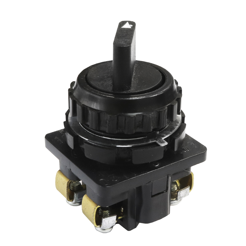 Переключатели поворотные ПЕ 031 используются для замыкания-размыкания электрических цепей в постах и пультах управления, на станках, кузнечно-прессовом оборудовании, на конвейерах, в железнодорожных вагонах и локомотивах, трамвайных вагонах и вагонах метро, для управления кран-балками, тельферами и лебедками. Переключатели управления серии ПЕ диаметром 30 мм состоят из управляющего устройства (привода) и унифицированных съемных блоков (модулей) контактов замыкающего и размыкающего типа, предназначенных для коммутации электрических цепей управления переменного тока до 660 В, частотой 50 и 60 Гц и постоянного тока до 440 В. Могут поставляться как собранными- привод с модулями (блоками контактов), так и отдельно. ПЕ 031 изготавливаются в 1-м исполнении в зависимость от количества замыкающих и размыкающих контактов. Рукоятка на 3 положения. IP40.
