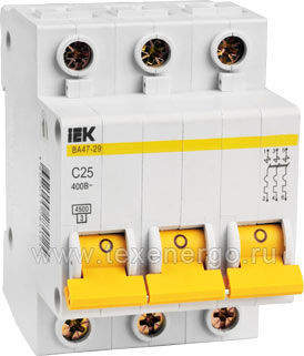 Автоматические выключатели ВА47-29 предназначены для защиты распределительных и групповых цепей, имеющих различную нагрузку. Автоматические выключатели ВА47-29 рекомендуются к применению в вводно-распределительных устройствах для жилых и общественных зданий. 200 типоисполнений на 18 номинальных токов от 0,5 до 63 А.