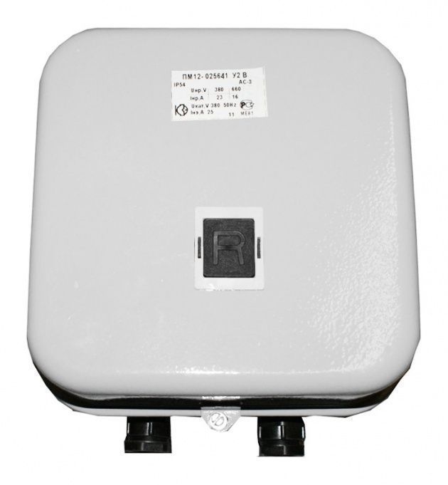 Пускатели электромагнитные серии ПМ12 предназначены для применения главным образом в стационарных установках для дистанционного пуска непосредственным подключением к сети, остановки и реверсирования трехфазных асинхронных электродвигателей с короткозамкнутым ротором при напряжении до 660 В переменного тока частоты 50 и 60 Гц. Для ограничения коммутационных перенапряжений, возникающих при отключении катушек управления, на пускатели серий ПМ12 могут устанавливаться ограничители перенапряжений ОПН. Пускатели, комплектуемые ограничителями перенапряжений, пригодны для работы в системах управления с применением микропроцессорной техники. Для защиты трехфазных асинхронных двигателей с короткозамкнутым ротором от перегрузок недопустимой продолжительности и от токов, возникающих при обрыве одной из фаз, предназначены трехполюсные электротепловые токовые реле серии РТТ. Структура условного обозначения электромагнитных пускателей ПМ12: ПМ12 - Х Х Х Х Х Х Х Х 1. Обозначение серии: 2. Цифры, указывающие условное обозначение номинального тока: 010 —10 А 025 —25 А 040 —40 А 063 —63 А 100 —100 А 160 —160 А 250 —250 А 3. Цифра, указывающая условное обозначение пускателей по назначению и наличию теплового реле: 1 - нереверсивный пускатель без теплового реле 2 - нереверсивный пускатель с тепловым реле 5 - реверсивный пускатель без теплового реле, с мех. блокировкой и степенью защиты IP00 6 - реверсивный пускатель с тепловым реле, с электрической и механической блокировками 4. Цифра, указывающая исполнение пускателей по степени защиты и наличию кнопок управления: 0 - степень защиты IP00 1 - степень защиты IP54 без кнопок 2 - степень защиты IP54 с кнопками «Пуск» + «Стоп» 3 - степень защиты IP54 с кнопками «Пуск» + «Стоп» + сигнальная лампа 4 - степень защиты IP40 без кнопок 5 - степень защиты IP20 6 - степень защиты IP40 с кнопками «Пуск» + «Стоп» 7 - степень защиты IP40 «Пуск» + «Стоп» + сигнальная лампа 5. Цифра, указывающая исполнение пускателей по числу и исполнению контактов вспомогательной цепи: 0 - исполнение 1з для пускателей на номинальный ток: 10 А, 25 А, 40 А (2з+2р для пускателей на номинальный ток 100 А,125 А,160 А,180 А, 250 А) 1 - исполнение 1р для пускателей на номинальный ток: 10 А, 25 А, 40 А (4з+4р для пускателей на номинальный ток: 100 А,125 А,160 А,180 А,2 50А) 6. Буква, характеризующая климатическое исполнение по ГОСТ 15150: (У) - стандартное исполнение (Т) - тропическое 7. Цифра, характеризующая категорию размещения ГОСТ 15150 8. Буква, указывающая исполнение по износостойкости: А, Б, В Пускатели 100-250 А изготавливаются, как с металлическим основанием, так и с пластмассовым.