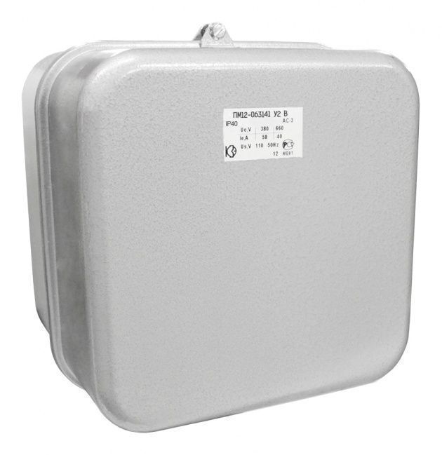 Пускатели электромагнитные серии ПМ12 предназначены для применения главным образом в стационарных установках для дистанционного пуска непосредственным подключением к сети, остановки и реверсирования трехфазных асинхронных электродвигателей с короткозамкнутым ротором при напряжении до 660 В переменного тока частоты 50 и 60 Гц. Для ограничения коммутационных перенапряжений, возникающих при отключении катушек управления, на пускатели серий ПМ12 могут устанавливаться ограничители перенапряжений ОПН. Пускатели, комплектуемые ограничителями перенапряжений, пригодны для работы в системах управления с применением микропроцессорной техники. Для защиты трехфазных асинхронных двигателей с короткозамкнутым ротором от перегрузок недопустимой продолжительности и от токов, возникающих при обрыве одной из фаз, предназначены трехполюсные электротепловые токовые реле серии РТТ. Структура условного обозначения электромагнитных пускателей ПМ12: ПМ12 - Х Х Х Х Х Х Х Х 1. Обозначение серии: 2. Цифры, указывающие условное обозначение номинального тока: 010 —10 А 025 —25 А 040 —40 А 063 —63 А 100 —100 А 160 —160 А 250 —250 А 3. Цифра, указывающая условное обозначение пускателей по назначению и наличию теплового реле: 1 - нереверсивный пускатель без теплового реле 2 - нереверсивный пускатель с тепловым реле 5 - реверсивный пускатель без теплового реле, с мех. блокировкой и степенью защиты IP00 6 - реверсивный пускатель с тепловым реле, с электрической и механической блокировками 4. Цифра, указывающая исполнение пускателей по степени защиты и наличию кнопок управления: 0 - степень защиты IP00 1 - степень защиты IP54 без кнопок 2 - степень защиты IP54 с кнопками «Пуск» + «Стоп» 3 - степень защиты IP54 с кнопками «Пуск» + «Стоп» + сигнальная лампа 4 - степень защиты IP40 без кнопок 5 - степень защиты IP20 6 - степень защиты IP40 с кнопками «Пуск» + «Стоп» 7 - степень защиты IP40 «Пуск» + «Стоп» + сигнальная лампа 5. Цифра, указывающая исполнение пускателей по числу и исполнению контактов вспомогательной цепи: 0 - исполнение 1з для пускателей на номинальный ток: 10 А, 25 А, 40 А (2з+2р для пускателей на номинальный ток 100 А,125 А,160 А,180 А, 250 А) 1 - исполнение 1р для пускателей на номинальный ток: 10 А, 25 А, 40 А (4з+4р для пускателей на номинальный ток: 100 А,125 А,160 А,180 А,2 50А) 6. Буква, характеризующая климатическое исполнение по ГОСТ 15150: (У) - стандартное исполнение (Т) - тропическое 7. Цифра, характеризующая категорию размещения ГОСТ 15150 8. Буква, указывающая исполнение по износостойкости: А, Б, В Пускатели 100-250 А изготавливаются, как с металлическим основанием, так и с пластмассовым.