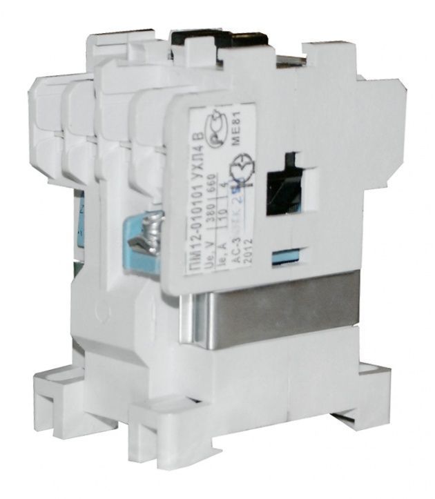 Пускатели электромагнитные серии ПМ12 предназначены для применения главным образом в стационарных установках для дистанционного пуска непосредственным подключением к сети, остановки и реверсирования трехфазных асинхронных электродвигателей с короткозамкнутым ротором при напряжении до 660 В переменного тока частоты 50 и 60 Гц. Для ограничения коммутационных перенапряжений, возникающих при отключении катушек управления, на пускатели серий ПМ12 могут устанавливаться ограничители перенапряжений ОПН. Пускатели, комплектуемые ограничителями перенапряжений, пригодны для работы в системах управления с применением микропроцессорной техники. Для защиты трехфазных асинхронных двигателей с короткозамкнутым ротором от перегрузок недопустимой продолжительности и от токов, возникающих при обрыве одной из фаз, предназначены трехполюсные электротепловые токовые реле серии РТТ. Структура условного обозначения электромагнитных пускателей ПМ12: ПМ12 - Х Х Х Х Х Х Х Х 1. Обозначение серии: 2. Цифры, указывающие условное обозначение номинального тока: 010 —10 А 025 —25 А 040 —40 А 063 —63 А 100 —100 А 160 —160 А 250 —250 А 3. Цифра, указывающая условное обозначение пускателей по назначению и наличию теплового реле: 1 - нереверсивный пускатель без теплового реле 2 - нереверсивный пускатель с тепловым реле 5 - реверсивный пускатель без теплового реле, с мех. блокировкой и степенью защиты IP00 6 - реверсивный пускатель с тепловым реле, с электрической и механической блокировками 4. Цифра, указывающая исполнение пускателей по степени защиты и наличию кнопок управления: 0 - степень защиты IP00 1 - степень защиты IP54 без кнопок 2 - степень защиты IP54 с кнопками «Пуск» + «Стоп» 3 - степень защиты IP54 с кнопками «Пуск» + «Стоп» + сигнальная лампа 4 - степень защиты IP40 без кнопок 5 - степень защиты IP20 6 - степень защиты IP40 с кнопками «Пуск» + «Стоп» 7 - степень защиты IP40 «Пуск» + «Стоп» + сигнальная лампа 5. Цифра, указывающая исполнение пускателей по числу и исполнению контактов вспомогательной цепи: 0 - исполнение 1з для пускателей на номинальный ток: 10 А, 25 А, 40 А (2з+2р для пускателей на номинальный ток 100 А,125 А,160 А,180 А, 250 А) 1 - исполнение 1р для пускателей на номинальный ток: 10 А, 25 А, 40 А (4з+4р для пускателей на номинальный ток: 100 А,125 А,160 А,180 А,2 50А) 6. Буква, характеризующая климатическое исполнение по ГОСТ 15150: (У) - стандартное исполнение (Т) - тропическое 7. Цифра, характеризующая категорию размещения ГОСТ 15150 8. Буква, указывающая исполнение по износостойкости: А, Б, В Пускатели 100-250 А изготавливаются, как с металлическим основанием, так и с пластмассовым.