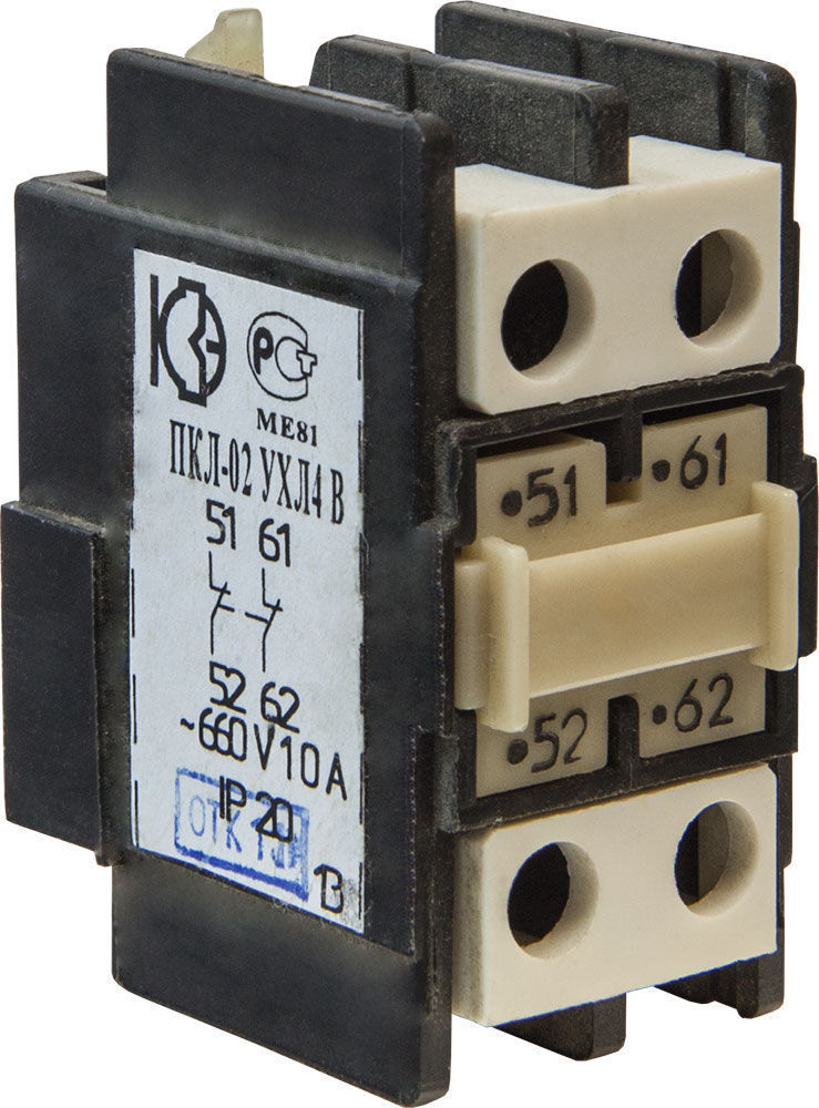 Предназначены для увеличения количества вспомогательных контактов. Приставки ПКЛ устанавливаются на пускатели типа ПМ12-025, ПМ12-040, ПМ12-063, стойки контактные - на пускатели типа ПМ12-010 и реле промежуточные РЭП34. На каждый из пускателей можно установить до 2-х контактных приставок либо стоек с различным набором размыкающих и замыкающих контактов. Контактные приставки и стойки механически соединяются с пускателями и фиксируются при помощи защелки. Способ крепления обеспечивает жесткую и надежную связь между контактной приставкой и пускателем. Приставки контактные ПКЛ выпускаются со степенью защиты IP20, стойки - IP00 и IP20. Исполнения по износостойкости: А - не менее 2 млн. циклов, Б - не менее 1 млн. циклов, В - не менее 0,3 млн. циклов. Номинальный ток приставок контактных и стоек - 10 А. Номинальное напряжение по изоляции - 660 В. Климатическое исполнение УХЛ4 и Т3 по ГОСТ 15150-69. Приставки предназначены для использования в следующих условиях: • температура окружающей среды от -40 до +55°С, • высота над уровнем моря не более 2000 м.