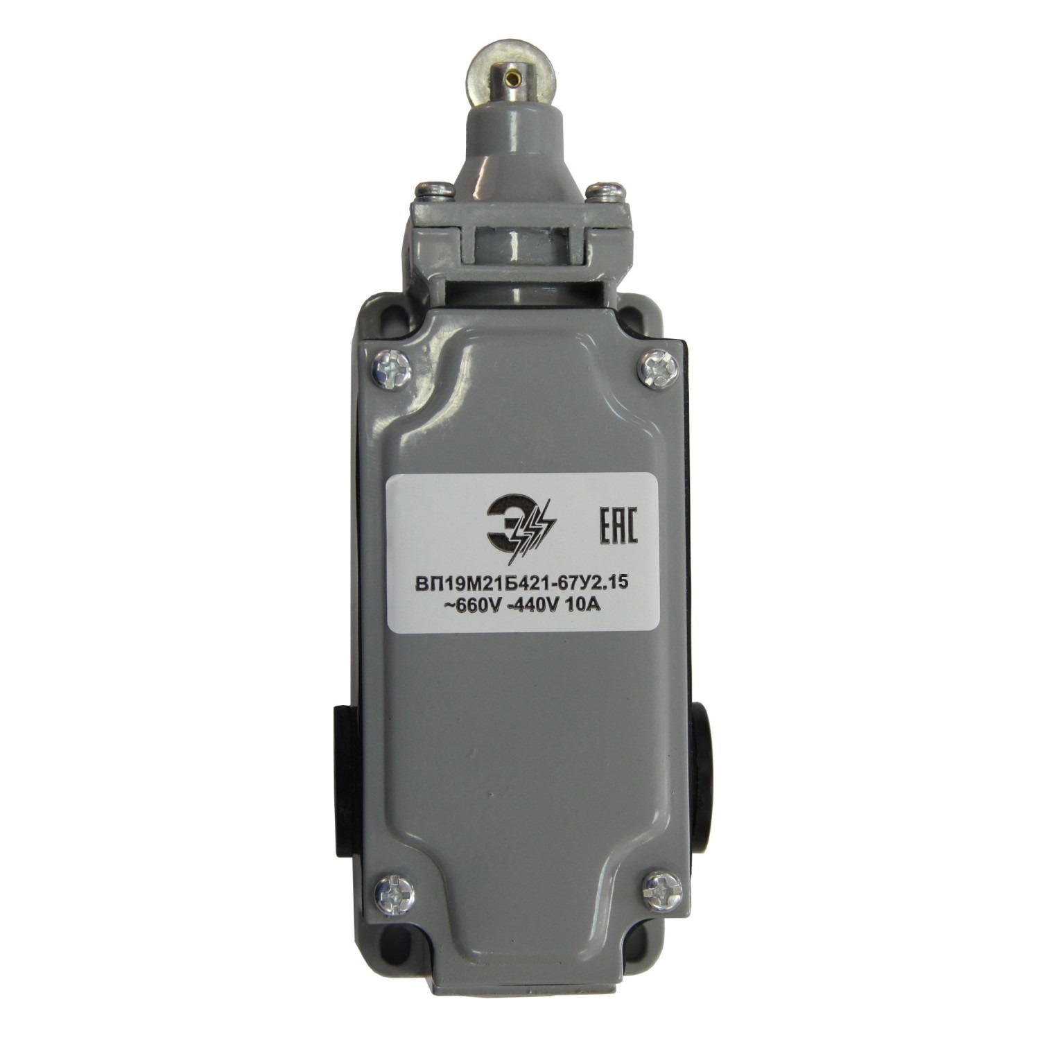 Выключатели путевые ВП19 предназначены для коммутации электрических цепей управления переменного тока напряжением до 660В частотой 50Гц и постоянного тока напряжением до 400В под воздействием управляющих упоров в определенных точках пути контролируемого объекта. Количество полюсов: 2 Контактная группа: 1НО+1НЗ Тип привода: рычаг с роликом регулируемый Материал корпуса: пластик Степень защиты: IP65 Габаритные размеры: 147х31х30 мм Номинальный коммутируемый ток — 10А (АС11, 220В) Номинальное рабочее напряжение: до 380В переменного тока частотой 50Гц, до 220В постоянного тока Тип переключающего устройства: полумгновенного действия Климатическое исполнение: У2, Т2 Характеристики Кол-во полюсов 2 Ном. ток, In10А Ном. рабочее напряжение, Ue660В, 50Гц/440В пост. Тип привода рычаг с роликом (регулируемый) Контактная группа 1НО+1НЗ