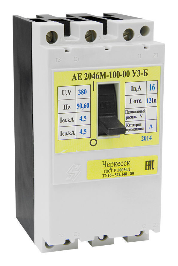Автоматические выключатели АЕ 2046 предназначены для защиты электрических цепей и потребителей электрической энергии от токов короткого замыкания и токов перегрузки, проведения тока в нормальном режиме, а также для нечастых (до 30 раз в сутки) оперативных включений и отключений электрических цепей и рассчитаны для эксплуатации в электроустановках бытового и промышленного назначения с напряжением до 400В переменного тока частоты 50Гц.