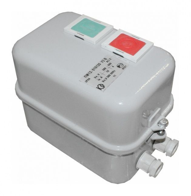 Пускатели электромагнитные серии ПМ12 предназначены для применения главным образом в стационарных установках для дистанционного пуска непосредственным подключением к сети, остановки и реверсирования трехфазных асинхронных электродвигателей с короткозамкнутым ротором при напряжении до 660 В переменного тока частоты 50 и 60 Гц. Для ограничения коммутационных перенапряжений, возникающих при отключении катушек управления, на пускатели серий ПМ12 могут устанавливаться ограничители перенапряжений ОПН. Пускатели, комплектуемые ограничителями перенапряжений, пригодны для работы в системах управления с применением микропроцессорной техники. Для защиты трехфазных асинхронных двигателей с короткозамкнутым ротором от перегрузок недопустимой продолжительности и от токов, возникающих при обрыве одной из фаз, предназначены трехполюсные электротепловые токовые реле серии РТТ. Структура условного обозначения электромагнитных пускателей ПМ12: ПМ12 - Х Х Х Х Х Х Х Х 1. Обозначение серии: 2. Цифры, указывающие условное обозначение номинального тока: 010 —10 А 025 —25 А 040 —40 А 063 —63 А 100 —100 А 160 —160 А 250 —250 А 3. Цифра, указывающая условное обозначение пускателей по назначению и наличию теплового реле: 1 - нереверсивный пускатель без теплового реле 2 - нереверсивный пускатель с тепловым реле 5 - реверсивный пускатель без теплового реле, с мех. блокировкой и степенью защиты IP00 6 - реверсивный пускатель с тепловым реле, с электрической и механической блокировками 4. Цифра, указывающая исполнение пускателей по степени защиты и наличию кнопок управления: 0 - степень защиты IP00 1 - степень защиты IP54 без кнопок 2 - степень защиты IP54 с кнопками «Пуск» + «Стоп» 3 - степень защиты IP54 с кнопками «Пуск» + «Стоп» + сигнальная лампа 4 - степень защиты IP40 без кнопок 5 - степень защиты IP20 6 - степень защиты IP40 с кнопками «Пуск» + «Стоп» 7 - степень защиты IP40 «Пуск» + «Стоп» + сигнальная лампа 5. Цифра, указывающая исполнение пускателей по числу и исполнению контактов вспомогательной цепи: 0 - исполнение 1з для пускателей на номинальный ток: 10 А, 25 А, 40 А (2з+2р для пускателей на номинальный ток 100 А,125 А,160 А,180 А, 250 А) 1 - исполнение 1р для пускателей на номинальный ток: 10 А, 25 А, 40 А (4з+4р для пускателей на номинальный ток: 100 А,125 А,160 А,180 А,2 50А) 6. Буква, характеризующая климатическое исполнение по ГОСТ 15150: (У) - стандартное исполнение (Т) - тропическое 7. Цифра, характеризующая категорию размещения ГОСТ 15150 8. Буква, указывающая исполнение по износостойкости: А, Б, В Пускатели 100-250 А изготавливаются, как с металлическим основанием, так и с пластмассовым.