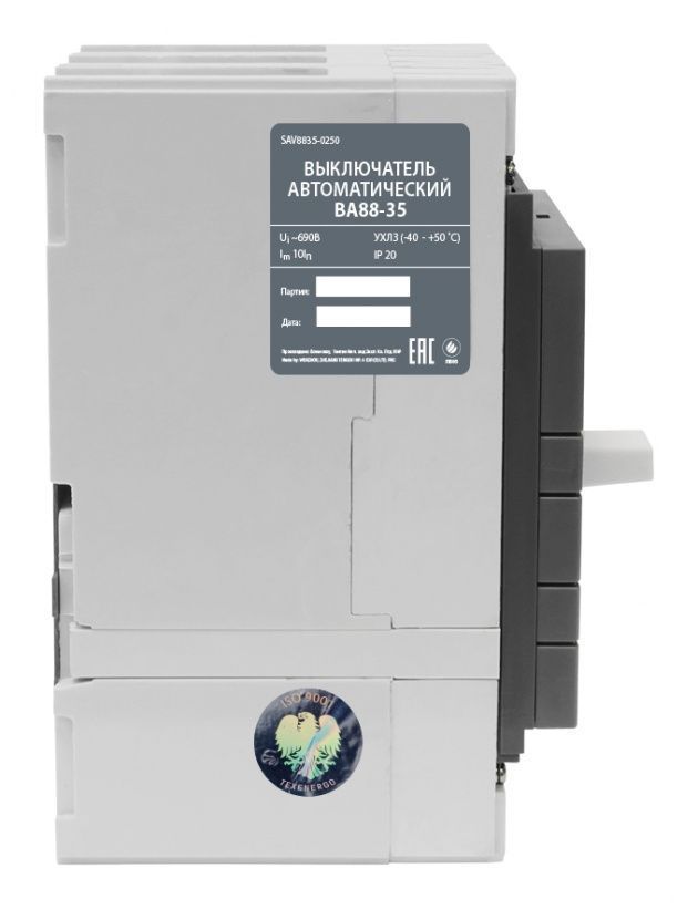 Выключатели автоматические серии ВА88 предназначены для защиты электрической сети от коротких замыканий, перегрузок, а также редких оперативных отключений электрических цепей (3 раза в час). Рассчитаны для эксплуатации в электроустановках с номинальным напряжением до 400 В переменного тока частотой 50 Гц с номинальными токами от 10 А до 630 А. Выключатели автоматические соответствуют требованиям ГОСТ Р 50030.2 Область применения: защита распределительных сетей, защита электродвигателей.