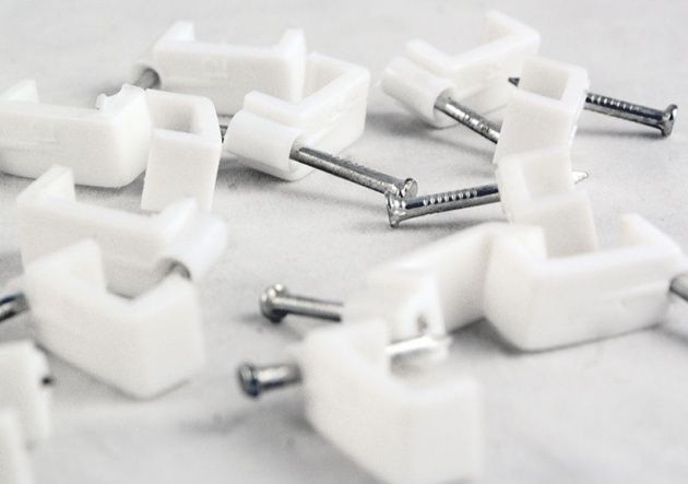 Предназначены для быстрого и надежного крепления плоских кабелей. Возможно крепление к дереву, прессованному картону и швам кирпичной кладки, к штукатурке, бетону, кирпичу. Изготовлены из гибкого негорючего ударопрочного полипропилена, гвоздь - закаленная оцинкованная сталь.