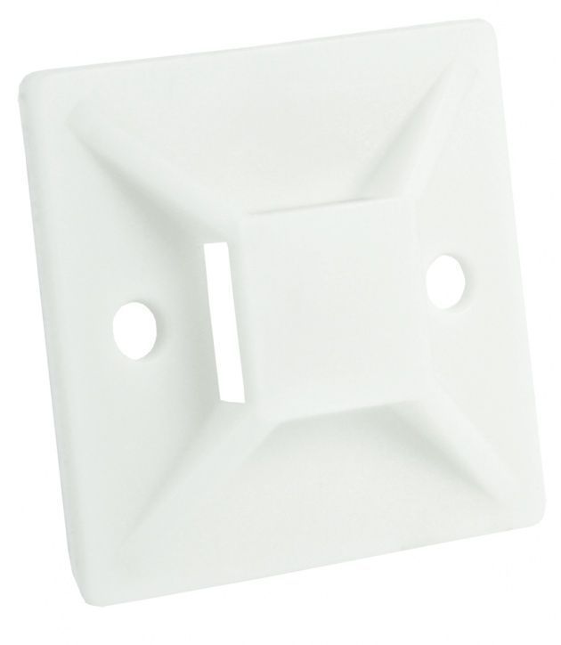Площадки для стяжек (хомутов) предназначены для крепления кабельных стяжек на ровную гладкую поверхность. Площадки для стяжек изготовлены из полиамида (нейлон 66). На обратную сторону площадки для стяжек нанесена клеевая основа, за счет которой происходит крепление к поверхности. Устойчивы к старению, коррозии, воздействию ультрафиолета, а так же солей, щелочей, кислот, бензина, спирта и масел.