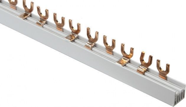 Шины соединительные типа FORK ("вилка") представляют собой пластины выполненные из меди, закрепленные в корпусе из диэлектрического материала, не поддерживающие горения. Применяются для удобного и безопасного соединения следующих групп: выключатели автоматические автоматы дифференциальные выключатели дифференциальные выключатели нагрузки
