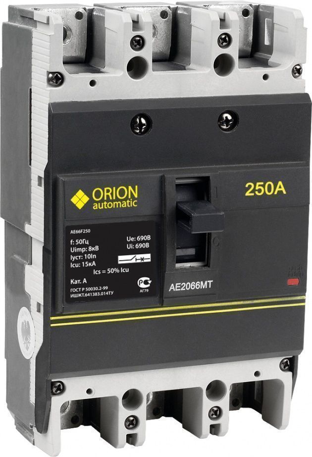 Оригинальный дизайн и отличное качество выключателей ORION, предоставляет вам возможность использовать современное и высокотехнологичное оборудование, проверенное годами. Многолетняя эксплуатация, отсутствие претензий и возвратов, является прекрасным подтверждением качества выключателей ORION. Каждый выключатель проходит все процедуры оценки, установленные в технических регламентах Таможенного союза, что подтверждается сертификатами и протоколами испытаний. Автоматические выключатели ORION - это отличная альтернатива Sсhneider Electric и ABB. Выключатели предназначены для применения в электрических цепях переменного тока частотой 50, 60 Гц, напряжением до 690 В с рабочими токами от 10 до 250 А. Осуществляют защиту электрооборудования от сверхтоков, токов перегрузки и короткого замыкания, а также служат для нечастых (до 3-х в час, но неболее 30 раз в сутки) оперативных включений и отключений. Почетная награда за высокие показатели качества - Лучшее электрооборудование 2008