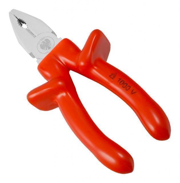 Пассатижи 160 мм диэлектрические Изготовлены из никелерованной хром-ваннадиевой нержавеющей стали. Удобные красные изолированные ручки позволяют безопасно работать под напряжением до 1000 В. Плоская рифленая поверхность губок позволяет захватывать и удерживать детали, а овальное расширение с насечкой захватывает круглые детали и гайки. Заточенная перемычка между губками предназначена для резки проволоки и перекусывания мягкого металла и выполняет функцию бокорезов. Пассатижи предназначены для выполнения слесарных, монтажных и других видов работ.