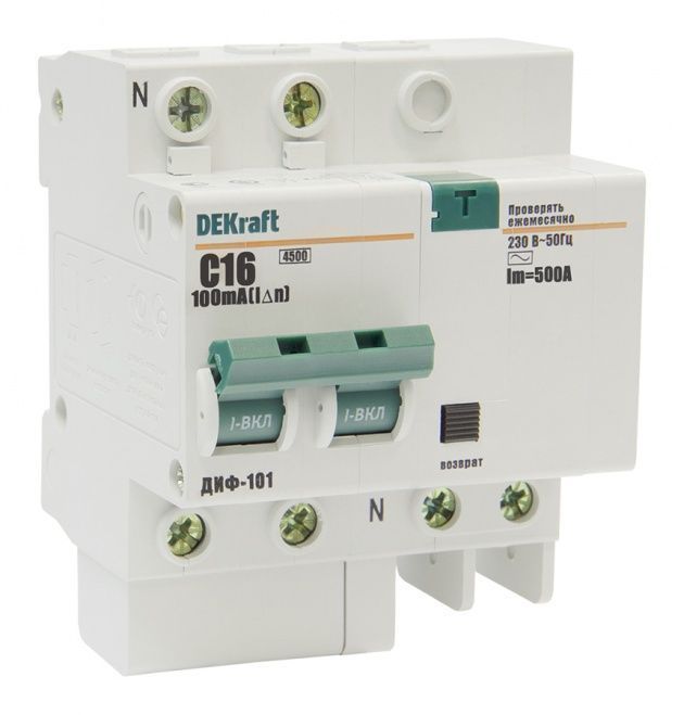 Дифференциальные автоматы DEKraft серии ДИФ-101 (их правильнее называть АВДТ - Автоматическими Выключателями Дифференциального Тока со встроенной защитой от сверхтоков) сочетают функции автоматического выключателя и ВДТ без встроенной защиты от сверхтоков. Аппарат ДИФ-101 является АВДТ со встроенной защитой от сверхтоков одно- и трехфазных сетей. При этом неважно, по какой причине сработал аппарат, – цепь все равно разрывается. Конструктивно представляют собой автоматический выключатель с присоединенным к нему электронным блоком дифференциальной защиты. Принцип действия ДИФ-101 является сочетанием блока дифференциальной защиты и автоматического выключателя, и принцип его действия аналогичен эти двум продуктам. Левая часть устройства функционирует как автомат, а правая - как УЗО. При этом неважно, какой именно блок сработал - цепь всё равно разрывается. При срабатывании дифференциального автомата от утечки тока выступает кнопка "Возврат", которая, таким образом, указывает отключения цепи - именно утечку, а не перегрузку или короткое замыкание. Аппарат не даст возможности взвести его повторно, если предварительно не была нажата выступившая кнопка "Возврат". Сфера применения Обеспечивают три вида защиты от: - короткого замыкания, - перегрузки, - возникновения утечки тока (в частности, вследствие прикосновения человека к токоведущим частям).