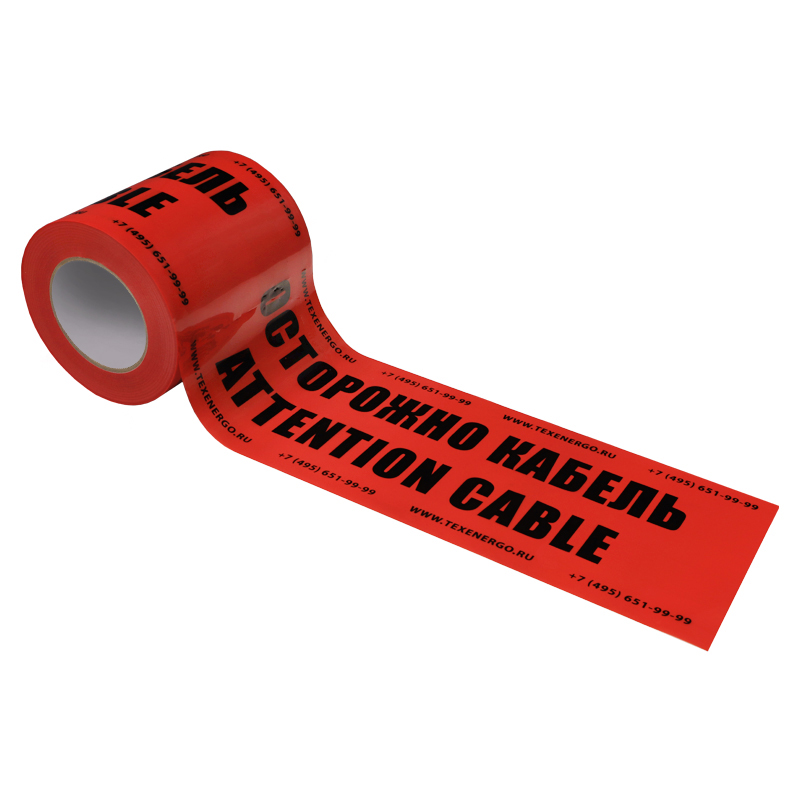 Лента сигнальная ЛСЭ применяется для идентификации электрического кабеля напряжением до 20 кВ, проложенного на глубине до 2-х метров Цвет красный, надпись на русском и английском языках: "Осторожно кабель" В зависимости от количества кабелей в траншее укладываются ленты шириной 150, 300, 450, 600 мм. Укладка осуществляется поверх кабеля на уровне 20см (регламент ПУЭ, пункт 2.3.83 издания 6-7). Предварительно осуществляется отсыпка и утрамбовка грунта, затем прокладывается сигнальная лента, после чего вновь засыпается грунтом.