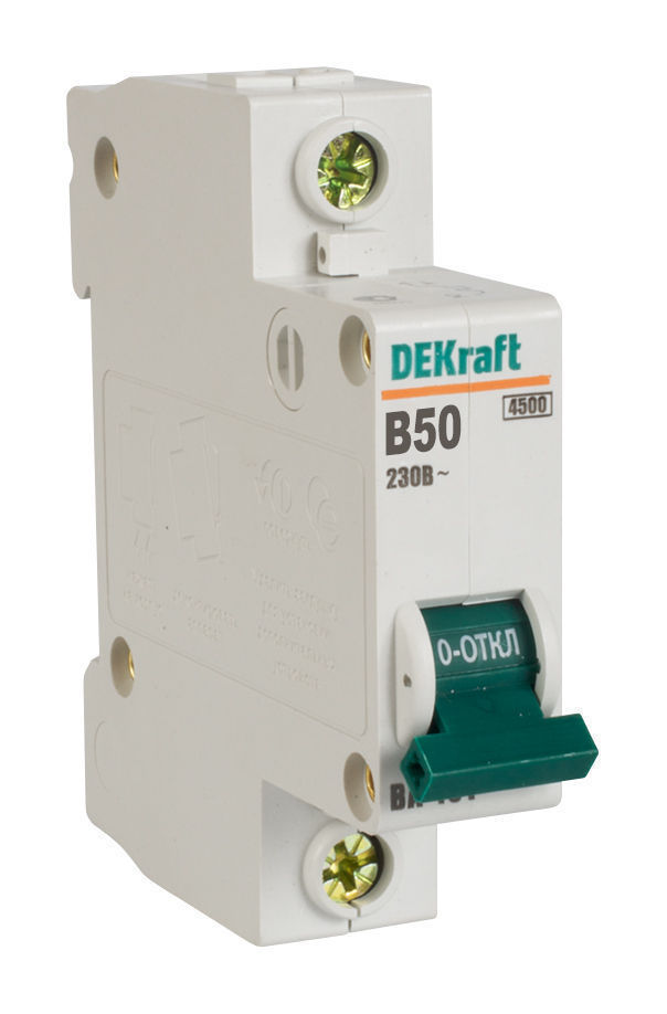 Автоматические выключатели DEKraft ВА-101 предназначены защиты электрических цепей от перегрузок и токов короткого замыкания. Применяются в вводно-распределительных щитах жилых и административных зданий, а также в промышленности. Преимущества ВА-101: • Каждая групповая упаковка автоматических выключателей поставляется в защитной плёнке, защищающей от попадания пыли и влаги во время транспортировки. Неповрежденная упаковка является доказательством неиспользования ранее данного автомата. • Вместе с выключателями отгружаются наклейки для маркировки и подписей. • На лицевой стороне автомата отображается информация по основным техническим характеристикам аппарата. • На контактных клеммах расположены насечки для лучшего контакта с проводниками. • При производстве автоматов используется сплошной контроль продукции. В дополнение к этому ещё выборочный контроль - из партии продукции выбирается несколько товаров и проверяют на соответствие качества, сплошной – вся продукция, перед упаковкой проходит ряд контрольных тестов. • Выключатели поставляются с открытыми клеммами, что снижает срок установки выключателей в распределительном щите.