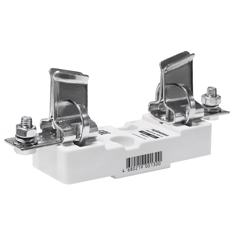 Основание держателя (изолятор) выполнено из армированной термореактивной пластмассы, стойкой к коррозии, механическим воздействиям, перепадам температуры и динамическим ударам, которые возникают при коротких замыканиях вплоть до 120 кА. Контакты плавкой вставки выполнены в форме ножа (заострены), что позволяет их устанавливать в держатели с меньшими усилиями.