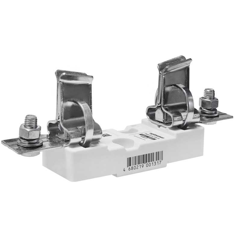 Основание держателя (изолятор) выполнено из армированной термореактивной пластмассы, стойкой к коррозии, механическим воздействиям, перепадам температуры и динамическим ударам, которые возникают при коротких замыканиях вплоть до 120 кА. Контакты плавкой вставки выполнены в форме ножа (заострены), что позволяет их устанавливать в держатели с меньшими усилиями.