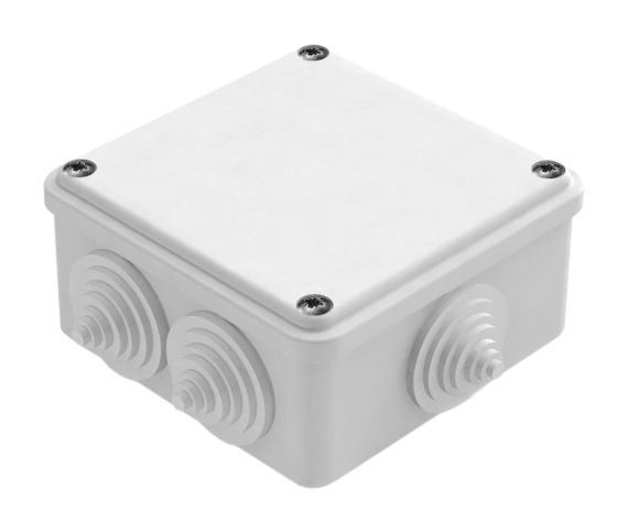 Коробка расп. о/у 6 вводов 100х100х50 IP55 Для изолирования точек отвода электропроводов, электрокабеля сетей освещения и энергосиловых сетей, напряжением до 1000В переменного и постоянного тока, а также кабелей информационных сетей (телефонных, компьютерных, сетей связи и пр.) Коробки используются при открытом монтаже электропроводки.
