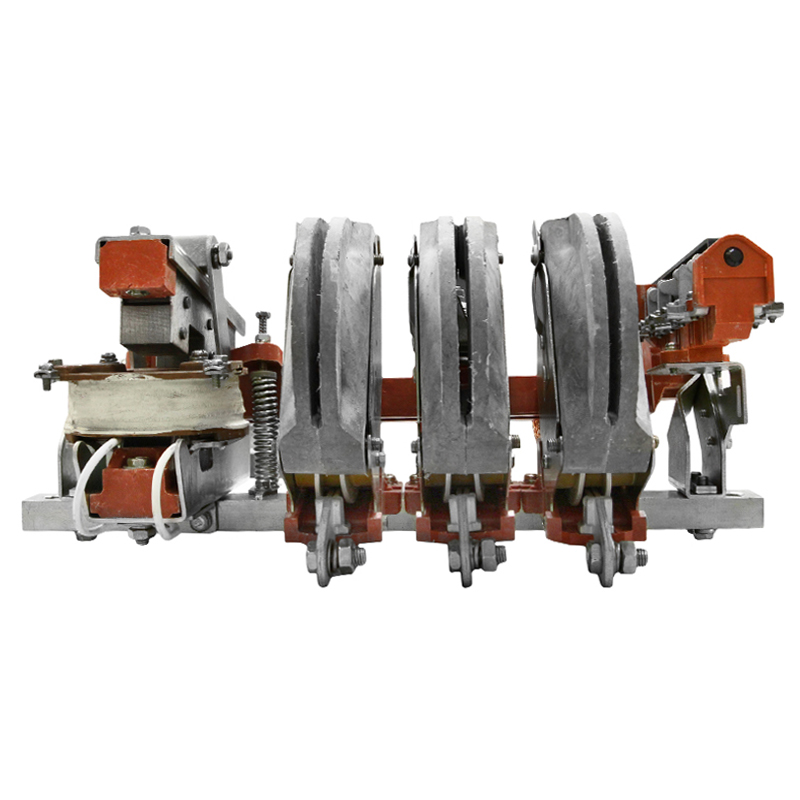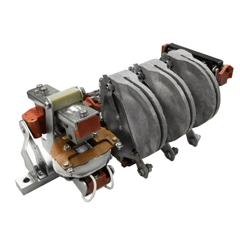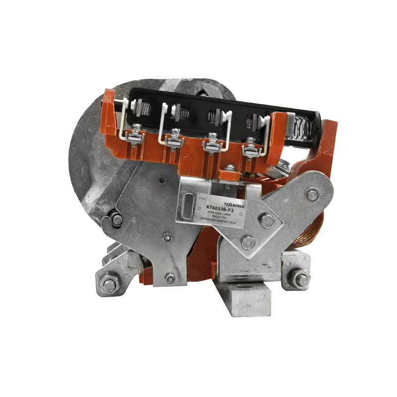 Контактор электромагнитного типа, открытый, общего применения с естественным воздушным охлаждением КТ 6033Б-У3 предназначен для включения и отключения приемников электрической энергии, для эксплуатации в условиях умеренного климата. Контакторы электромагнитные переменного тока КТ6033 рассчитаны для включения и отключения электрических цепей переменного тока напряжением до 380 В в стационарных приводах в дистанционном режиме, а именно: частый пуск короткозамкнутых электродвигателей, а также реверсирование электродвигателей, широко применяются в составе НКУ для включения мощных электрических машин, в аппаратуре АВР и других распределительных устройствах. Контакторы обеспечивают большое число включений и отключений (циклов) при дистанционном управлении ими. Механическая износостойкость КТ6013 составляет 10 млн. циклов, а коммутационная износостойкость равна 330 тысяч циклов. Допустимая частота включений в час 1200. Категория основного применения АС-4. Контактор трехфазный, имеет три силовых контакта для пропускания тока и коммутации приемников электрической энергии. Предназначен для работы под нагрузкой, т.е. при протекании токов по силовой цепи не превышающих номинальных значений, для контактора КТ6033 Iном=250 А. Возникающая электрическая дуга в месте разрыва силовых контактов эффективно гасится с помощью дугогасительных камер. Управление контактором осуществляется переменным током 220 В, 50 Гц. Блок-контакты собраны по схеме: 2з+2р. КТ 60 Х1 Х2 Б Х3 Х4 Х1 - величина номинального тока (1 - 100 А, 2 - 160 А, 3 - 250 А, 4 - 400 А, 5 - 630 А, 6 - 1000 А) Х2 - количество полюсов Б - контактор модернизированный Х3 - материал главных контактов (С - контакты металлокерамические на основе серебра, (-) - контакты медные) Х4 - напряжение катушки управления Уже в течение полувека контактор КТ6033 не претерпевает никаких изменений конструкции, простота которой являет собой наиболее наглядное доказательство высшей степени надежности контактора.