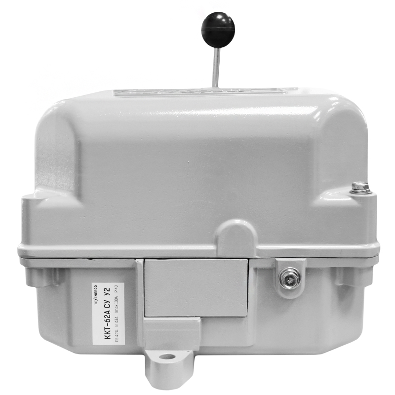 Командоконтроллеры ККТ предназначены для пуска, реверсирования и регулирования скорости вращения электродвигателей переменного тока серии МТ путем изменения схемы и величины включенных в электрическую цепь сопротивлений. Каждый контроллер имеет 12 электрических цепей. Схема коммутации заложена в самой конструкции механизма. Командоконтроллеры ККТ-61, ККТ-62, ККТ-63, ККТ-68 изменяют скорость вращения электродвигателя, за счет введения в цепь ротора регулируемых резисторов, в пределах 2,5:1, только в зоне значительных нагрузок. В зоне незначительных нагрузок, указанный диапазон получается только при толчковом режиме работы, т.е. многократное переключение с нулевого положения на рабочее и обратно. Расшифровка ККТ, маркировка ККТ-ХХАХ2: ККТ - контроллер кулачковый трёхфазного переменного тока, Х - длительный ток кулачкового элемента (63 или 50 А), Х - номер исполнения по схеме, А - модернизироанный, Х - порядковый номер модификации, Х2 - климатичское исполнение (У) и категория размещения 2 согласно ГОСТ 15543 и ГОСТ 15150.