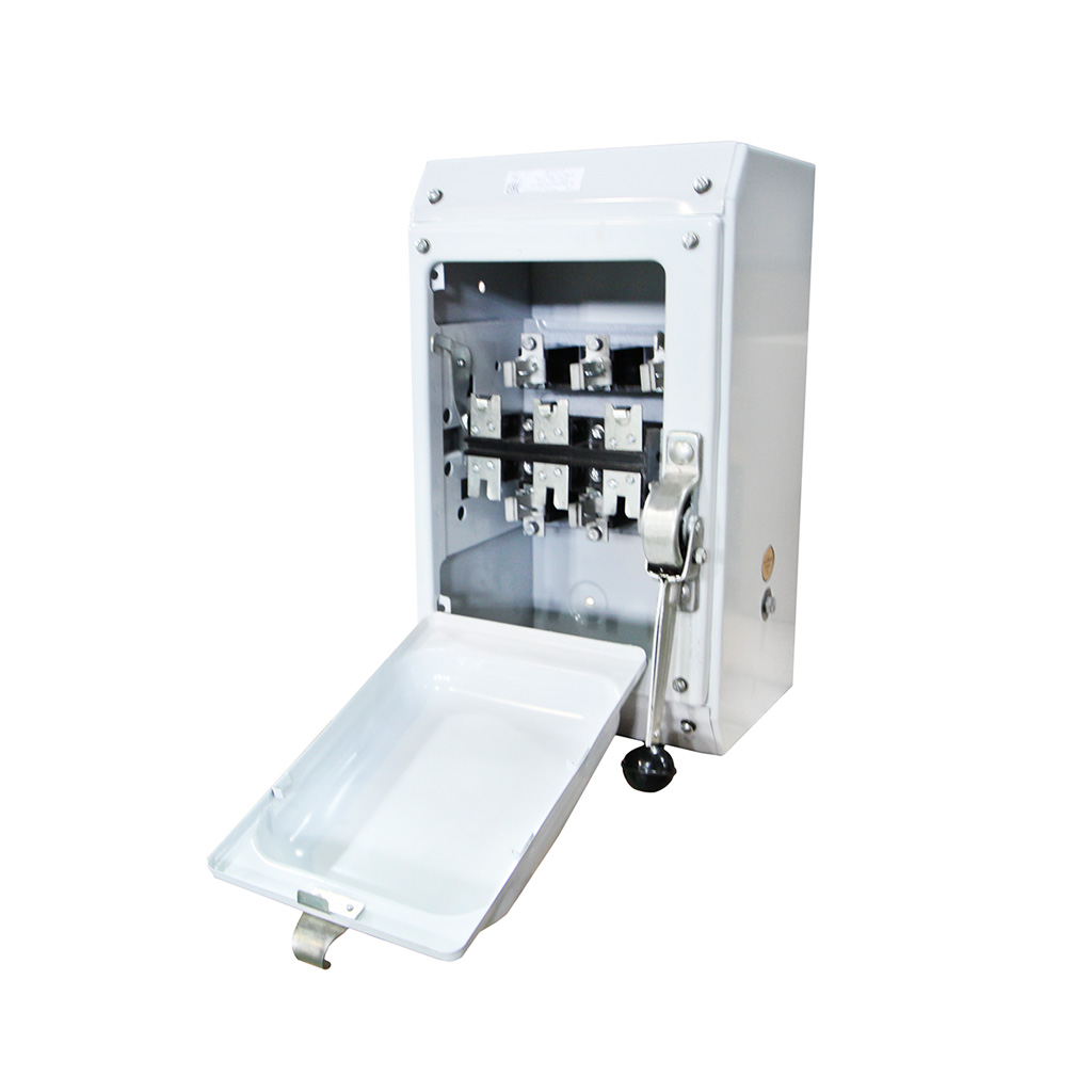 Ящик силовой с блоком "предохранитель - выключатель" (ЯБПВ-2 М У3 250А) (fuse-switch): Выключатель, у которого плавкая вставка или держатель с плавкой вставкой образуют подвижный контакт.НАЗНАЧЕНИЕ Ящик ЯБПВ-2 предназначен для нечастых включений и отключений, а также для защиты электрических сетей и приемников от недопустимых длительных перегрузок и токов короткого замыкания. Ящики применяются в электрических установках как переменного, так и постоянного тока.КОНСТРУКЦИЯЯщик представляет собой металлический корпус с выпуклой дверцей, в котором закреплен подвижный блок, на котором закреплены предохранители, выполняющие функцию подвижного контакта. Имеется возможность блокировки дверки.ТЕХНИЧЕСКИЕ ДАННЫЕ Номинальный ток предохранителей: 80, 100, 125, 160, 200, 250А