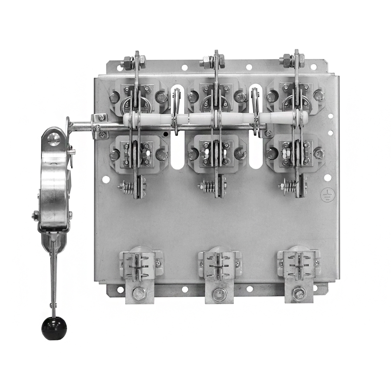 РПС: Р - рубильник, П - предохранители, С - смещенная рукоятка. Рубильники серии РПС с боковым смещённым приводом предназначены для пропускания номинальных токов, неавтоматического включения и отключения без нагрузки электрических цепей номинальным напряжением до 500В переменного тока номинальной частоты 50 и 60 Гц в устройствах распределения электрической энергии. Аппарат отключает электрическую цепь при превышении номинального тока посредством плавких вставок. Вид климатического исполнения У3 по ГОСТ 15150.