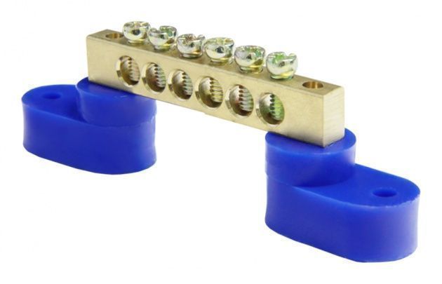 Шина нулевая изолированная используется для электрического и механического соединения нулевых рабочих и нулевых защитных проводников. Шина на DIN-рейку изготавливается из латуни, которая устанавливается на пластиковый изолятор, обладающий негорючими и самозатухающими свойствами. Нулевые изолированные шины способны работать в пределах температур от –40 и до +50оС с влажностью воздуха не выше 90%. Применяются в щитовом оборудовании для подсоединения нулевых рабочих (N) и нулевых защитных проводов (PE). Крепление шины предусмотрено по краям шины нулевой через угловые изоляторы нулевой шины.