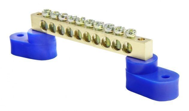 Шина нулевая изолированная используется для электрического и механического соединения нулевых рабочих и нулевых защитных проводников. Шина на DIN-рейку изготавливается из латуни, которая устанавливается на пластиковый изолятор, обладающий негорючими и самозатухающими свойствами. Нулевые изолированные шины способны работать в пределах температур от –40 и до +50оС с влажностью воздуха не выше 90%. Применяются в щитовом оборудовании для подсоединения нулевых рабочих (N) и нулевых защитных проводов (PE). Крепление шины предусмотрено по краям шины нулевой через угловые изоляторы нулевой шины.