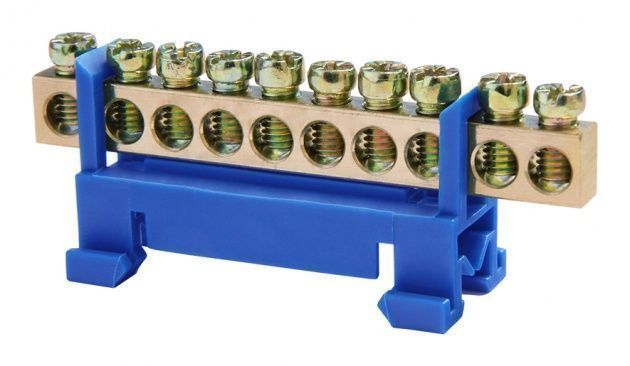 Шины нулевые изолированные предназначены для электрического и механического соединения нулевых рабочих и нулевых защитных проводников. Шины нулевые изолированные выполнены из латунной шины, установленной на пластиковый изолятор, изготовленный из самозатухающего пластика. Шина нулевая изолированная с DIN-изолятором типа «Стойка» используется для удобного монтажа в распределительных щитах, шкафах управления и другого электротехнического оборудования.