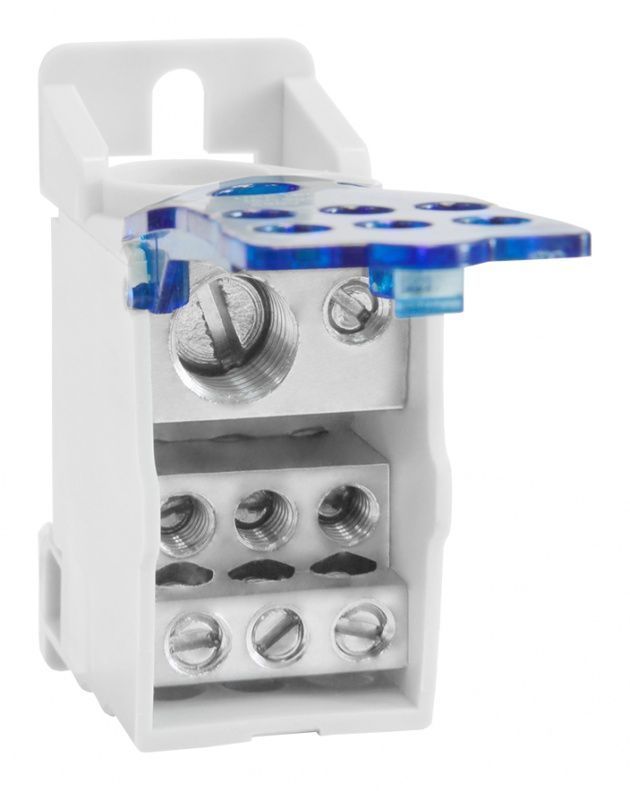 Распределительные блоки применяются для создания упорядоченных систем распределения в электрощитах и структурированного подключения отводных линий. Материал: Корпус выполнен из не поддерживающего горение полиамида РА-6 Контактная группа блока выполнена из луженой меди. Преимущества: Большое количество точек подключения с возможностью использования как проводников с наконечниками, так и без них с возможностью визуальной проверки присоединения кабеля. Создание упорядоченной распределительной структуры в шкафах и сборках. Лицевая панель обеспечивает блоку степень защиты IP20 и предотвращает случайные прикосновения к токоведущей части блока. Помимо крепления на DIN-рейку предусмотрена возможность крепления блока на поверхность (монтажные платы и т.д.).