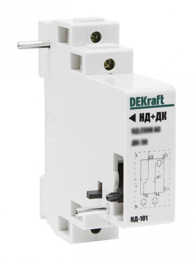 Расцепитель независимый с дополнительным контактом серии НД-103 предназначен для дистанционного отключения 1-4-х полюсного автоматического выключателя серии ВА-103, что позволяет использовать автоматические выключатели серии ВА-103 в системах автоматизации. Расцепитель независимый c дополнительным контактом серии НД-103 выполнен в габарите однополюсного автоматического выключателя ВА-103. Конструктивно представляет собой электромагнит, который через рычаг воздействует на механизм сброса независимого расцепления автоматических выключателей. Независимый расцепитель оснащен встроенным контактом. При срабатывании расцепителя от импульса напряжения произойдет автоматическое отключение расцепителя от питания. Это значит, что на зажимах может присутствовать постоянное напряжение без риска повреждения независимого расцепителя.
