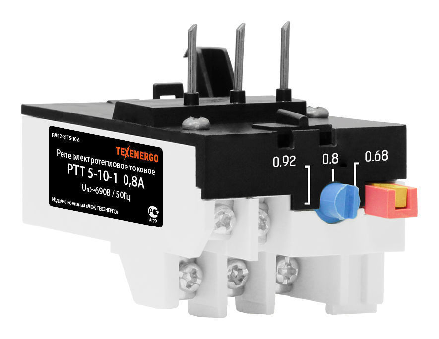 Реле электротепловые токовые типа РТТ5-10 предназначены для защиты трехфазных асинхронных электродвигателей с короткозамкнутым ротором от токовых перегрузок недопустимой продолжительности, в том числе возникающих при выпадении одной из фаз. Номинальное напряжение главной и вспомогательной цепи: переменного тока - 660 В, постоянного тока - 440 В, частота сети переменного тока - 50, 60 Гц, номинальный ток вспомогательной цепи - 6,3 А. Реле имеет один размыкающий либо переключающий контакт. Размыкающие контакты выполнены со свободным расцеплением.