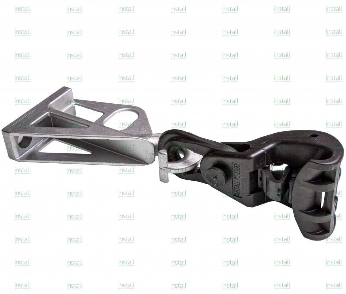 Комплект промежуточной подвески поддерживающий PS-1500 разборный, возможна поставка поддерживающего зажима PS-1500 без кронштейна. Применяется для крепления СИП-2 и самонесущего оптического кабеля на промежуточных опорах. Зажим открывается со стороны кронштейна. Элементы зажима, контактирующие с несущей нулевой жилой (самонесущим оптическим кабелем), изготовлены из изоляционного материала во избежание механического повреждения оболочки. Обеспечивает подвижное соединение. Возможно применение на угловых опорах ВЛИ при углах 50 градусов. При этом необходимо учитывать допустимый радиус изгиба нулевой жилы (самонесущего оптического кабеля).