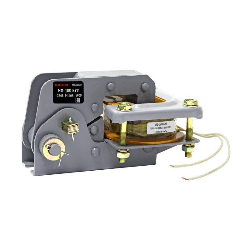 Основное требование к механизмам подъемных кранов заключается в обеспечении возможности производить большое число пусков и остановок в час. Такую подвижность механизма можно получить только за счет большого ускорения во время пуска и быстрого торможения при остановке. В связи с этим тормозные устройства являются одной из необходимых частей кранов. Помимо назначения тормоза максимально ускорять остановку механизма, т. е. поглощать кинетическую энергию его движущихся масс, тормоза требуются, чтобы удерживать механизмы в состоянии покоя во время остановки двигателя. Например, все механизмы подъема обязательно должны быть снабжены тормозами во избежание самоспуска поднятого груза после остановки двигателя. Нужны тормоза также и для автоматической остановки моста или тележки крана после перехода ими предельных положений и срабатывания конечных выключателей. В ряде схем прибегают к комбинированной системе торможения, при которой с помощью электрического торможения доводят частоту вращения электродвигателя почти до нуля и затем окончательно удерживают механизм механическим тормозом. Для освобождения или затормаживания механизмов применяют дистанционное электрическое управление. Для подъемных кранов с электрическим приводом управление тормозами осуществляется с помощью тормозных электромагнитов. В наиболее распространенной в краностроении конструкции колодочного или ленточного тормоза в качестве управляющего органа предусмотрен электромагнит. При включении тормозного электромагнита колодки или лента тормоза разжимаются и механизм освобождается. После отключения магнита и отпадания его якоря или сердечника шкив затормаживается под действием пружины или груза, затягивающих колодки или ленту. При такой системе торможения достигается автоматическая работа тормоза без усложнения электрической схемы управления. При всякой остановке электродвигателя, намеренной или вызванной какими-либо повреждениями, тормоз автоматически закрывается и механизм тормозится. Отключение главного рубильника при уходе крановщика из кабины управления автоматически вызовет затормаживание всех электродвигателей крана. В зависимости от рода тока тормозные электромагниты делятся на следующие типы:переменного трехфазного тока — тип КМТ, переменного однофазного тока — тип МО. Основные технические характеристики: номинальное напряжение переменного тока 220, 240, 380, 400, 415, 440 и 500 В для цепей однофазного переменного тока с частотой 50/60 Гц, работа прирывисто-продолжительном (ПВ=100%) и поворотно-каротковременном (ПВ=40%) режимах, эксплуатационная частота включений в ПВ+100% до 1000 в час, ПВ=40% до 300 в час, климатическое исполнение - У2.