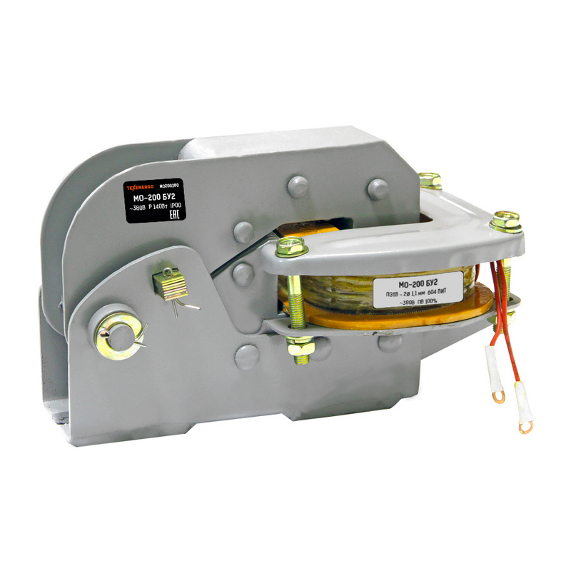 Основное требование к механизмам подъемных кранов заключается в обеспечении возможности производить большое число пусков и остановок в час. Такую подвижность механизма можно получить только за счет большого ускорения во время пуска и быстрого торможения при остановке. В связи с этим тормозные устройства являются одной из необходимых частей кранов. Помимо назначения тормоза максимально ускорять остановку механизма, т. е. поглощать кинетическую энергию его движущихся масс, тормоза требуются, чтобы удерживать механизмы в состоянии покоя во время остановки двигателя. Например, все механизмы подъема обязательно должны быть снабжены тормозами во избежание самоспуска поднятого груза после остановки двигателя. Нужны тормоза также и для автоматической остановки моста или тележки крана после перехода ими предельных положений и срабатывания конечных выключателей. В ряде схем прибегают к комбинированной системе торможения, при которой с помощью электрического торможения доводят частоту вращения электродвигателя почти до нуля и затем окончательно удерживают механизм механическим тормозом. Для освобождения или затормаживания механизмов применяют дистанционное электрическое управление. Для подъемных кранов с электрическим приводом управление тормозами осуществляется с помощью тормозных электромагнитов. В наиболее распространенной в краностроении конструкции колодочного или ленточного тормоза в качестве управляющего органа предусмотрен электромагнит. При включении тормозного электромагнита колодки или лента тормоза разжимаются и механизм освобождается. После отключения магнита и отпадания его якоря или сердечника шкив затормаживается под действием пружины или груза, затягивающих колодки или ленту. При такой системе торможения достигается автоматическая работа тормоза без усложнения электрической схемы управления. При всякой остановке электродвигателя, намеренной или вызванной какими-либо повреждениями, тормоз автоматически закрывается и механизм тормозится. Отключение главного рубильника при уходе крановщика из кабины управления автоматически вызовет затормаживание всех электродвигателей крана. В зависимости от рода тока тормозные электромагниты делятся на следующие типы: переменного трехфазного тока — тип КМТ, переменного однофазного тока — тип МО. Основные технические характеристики: номинальное напряжение переменного тока 220, 240, 380, 400, 415, 440 и 500 В для цепей однофазного переменного тока с частотой 50/60 Гц, работа прирывисто-продолжительном (ПВ=100%) и поворотно-каротковременном (ПВ=40%) режимах, эксплуатационная частота включений в ПВ+100% до 1000 в час, ПВ=40% до 300 в час, климатическое исполнение - У2.
