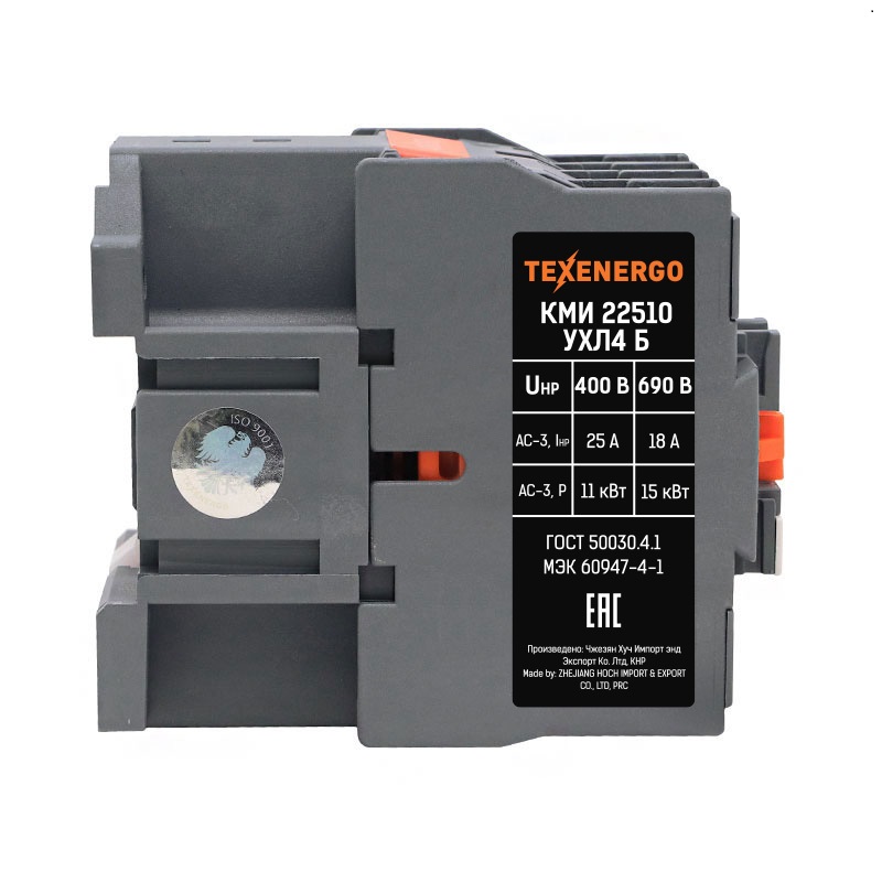Малогабаритные контакторы переменного тока общепромышленного применения серии КМИ на ток нагрузки от 9 до 95 А предназначены для пуска асинхронных электродвигателей с короткозамкнутым ротором на напряжение до 660 В. Все исполнения на ток нагрузки до 40 А имеют одну группу замыкающих или размыкающих дополнительных контактов. Исполнения на ток нагрузки свыше 40 А - две группы (замыкающую и размыкающую). Контакторы позволяют дистанционно управлять цепями освещения, коммутировать трехфазные конденсаторные батареи и первичные обмотки трехфазных низковольтных трансформаторов. Контакторы серии КМИ применяются в системах управления ленточными конвейерами, компрессорами, насосами, кондиционерами, тепловыми печами, цепями освещения. Контакторы КМИ являются электромагнитными аппаратами переменного тока, магнитные системы которых разделены на две части: неподвижную, эластично закрепленную в основании из пластмассы, и подвижную с контактами для коммутации силовой цепи. Обозначение модели КМИ Х1 ХХ2 Х3 Х4 Х1 - габарит: 1 - (9, 12, 18 А), 2 - (25, 32 А), 3 - (40, 50 А), 4 - (65, 80, 95 А) ХХ2 - номинальный ток ( 09, 12, 18, 25, 32, 40, 50, 65, 80, 95 А ) Х3 - исполнение контактора: 1 - нереверсивный (без оболочки), 2 - нереверсивный с тепловым реле (без оболочки), 3 - реверсивный (без оболочки), 4 - реверсивный с тепловым реле (без оболочки), 5 - нереверсивный (в оболочке), 6 - нереверсивный с тепловым реле (в оболочке), Х4 - исполнение контакторов по дополнительным контактам (0-1н.о, 1-1н.з, 2-1н.о+1н.з)
