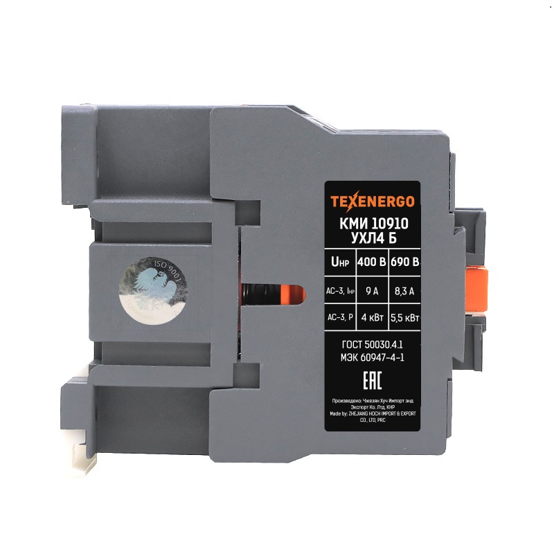 Малогабаритные контакторы переменного тока общепромышленного применения серии КМИ на ток нагрузки от 9 до 95 А предназначены для пуска асинхронных электродвигателей с короткозамкнутым ротором на напряжение до 660 В. Все исполнения на ток нагрузки до 40 А имеют одну группу замыкающих или размыкающих дополнительных контактов. Исполнения на ток нагрузки свыше 40 А - две группы (замыкающую и размыкающую). Контакторы позволяют дистанционно управлять цепями освещения, коммутировать трехфазные конденсаторные батареи и первичные обмотки трехфазных низковольтных трансформаторов. Контакторы серии КМИ применяются в системах управления ленточными конвейерами, компрессорами, насосами, кондиционерами, тепловыми печами, цепями освещения. Контакторы КМИ являются электромагнитными аппаратами переменного тока, магнитные системы которых разделены на две части: неподвижную, эластично закрепленную в основании из пластмассы, и подвижную с контактами для коммутации силовой цепи. Обозначение модели КМИ Х1 ХХ2 Х3 Х4 Х1 - габарит: 1 - (9, 12, 18 А), 2 - (25, 32 А), 3 - (40, 50 А), 4 - (65, 80, 95 А) ХХ2 - номинальный ток ( 09, 12, 18, 25, 32, 40, 50, 65, 80, 95 А ) Х3 - исполнение контактора: 1 - нереверсивный (без оболочки), 2 - нереверсивный с тепловым реле (без оболочки), 3 - реверсивный (без оболочки), 4 - реверсивный с тепловым реле (без оболочки), 5 - нереверсивный (в оболочке), 6 - нереверсивный с тепловым реле (в оболочке), Х4 - исполнение контакторов по дополнительным контактам (0-1н.о, 1-1н.з, 2-1н.о+1н.з)