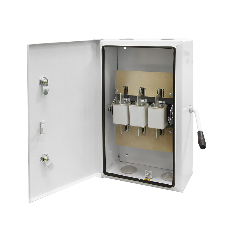 Ящик силовой с блоком "предохранитель - выключатель" унифицированный (ЯБПВУ-2 250А) (fuse-switch): Выключатель, у которого плавкая вставка или держатель с плавкой вставкой образуют подвижный контакт.НАЗНАЧЕНИЕ Ящик ЯБПВУ-2 предназначен для нечастых включений и отключений, а также для защиты электрических сетей и приемников от недопустимых длительных перегрузок и токов короткого замыкания. Ящики применяются в электрических установках как переменного, так и постоянного тока.КОНСТРУКЦИЯЯщик представляет собой металлический корпус с выпуклой дверцей, в котором закреплен подвижный блок, на котором закреплены предохранители, выполняющие функцию подвижного контакта. Имеется возможность блокировки дверки.ТЕХНИЧЕСКИЕ ДАННЫЕ Номинальный ток предохранителей: 80, 100, 125, 160, 200, 250А