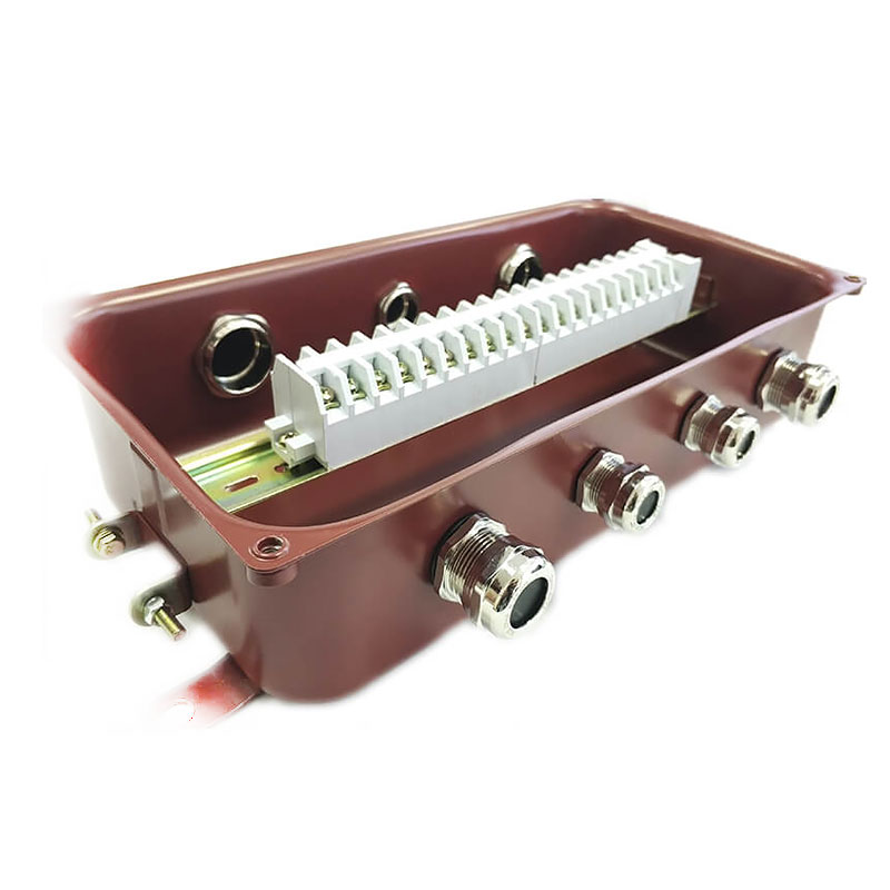 Узлы заземления не окрашены и не требуют зачистки. DIN - рейка позволяющая установить дополнительное оборудование. Винты под крест-плоскую отвертку. Оцинкованная сталь с грунтовым покрытием. Коробки клеммные КС-10 и КС-20 предназначены для соединения и разветвления силовых электрических цепей и цепей КИПиА, выполняемых контрольными и силовыми кабелями с алюминиевыми или медными жилами сечением 1,5-4мм2. В коробке используются металлические или пластмассовые кабельные вводы. Коробки могут комплектоваться латунными либо пластиковыми кабельными вводами, а так же металлическими заглушками. Степень защиты коробок с латунными кабельными вводами и металлическими заглушками IP65 по ГОСТ 14254-2015. С пластиковыми кабельными вводами IP54 по ГОСТ 14254-2015. Со ступенчатыми (ПВХ) кабельными вводами IP43 по ГОСТ 14254-2015. Коробки клеммные — это универсальное решение для соединения силовых и контрольных кабелей с возможностью размещения дополнительных элементов на DIN-рейку таких как: Распределительных блоков РБД, клеммных зажимов до 80А, блоков шин в корпусе, разнообразных шин на изоляторе.