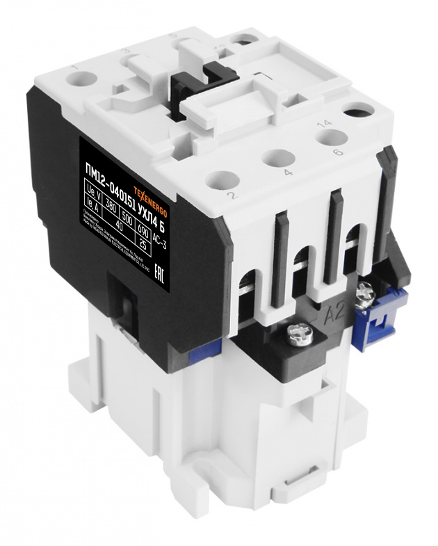 Электромагнитные пускатели ПМ12 (магнитные пускатели ПМ12, контакторы ПМ12) предназначены для пуска и остановки асинхронных двигателей с короткозамкнутым ротором. Применяются в конвейерах, станках, компрессорах, насосах, лифтах, эскалаторах, тепловых пушках, системах управления отоплением, вентиляцией и кондиционированием и т.д., а также для коммутации осветительных сетей. При наличии теплового реле, пускатель осуществляет защиту управляемого электродвигателя от перегрузок и от токов, возникающих при обрыве одной из фаз. Принцип действия: При подаче номинального напряжения на катушку она втягивает сердечник, и этим замыкает группу силовых и вспомогательных контактов. При достижении напряжения ниже порогового уровня на отпускание контакты размыкаются. Ассортимент аксессуаров для расширения функциональных возможностей пускателей ПМ12: Ссылки на аксессуары в нашем каталоге: Реле электротепловые серии РТТ, Приставки выдержки времени серии ПВЛ, Приставки контактные серии ПКЛ, Структура условного обозначения пускателей: 1. Обозначение серии 2. Цифры, указывающие условное обозначение номинального тока: 010 —10А, 025 —25А, 040 —40А, 063 —63А, 3. Цифра, указывающая условное обозначение пускателей по назначению и наличию теплового реле: 1 - нереверсивный пускатель без теплового реле, 2 - нереверсивный пускатель с тепловым реле, 5 - реверсивный пускатель без теплового реле, с мех. блокировкой и степенью защиты IP00, 6 - реверсивный пускатель с тепловым реле, с электрической и механической блокировками, 4. Цифра, указывающая исполнение пускателей по степени защиты и наличию кнопок управления: 0 - степень защиты IP00 1 - степень защиты IP54 без кнопок 2 - степень защиты IP54 с кнопками «Пуск» + «Стоп» 3 - степень защиты IP54 с кнопками «Пуск» + «Стоп» + сигнальная лампа 4 - степень защиты IP40 без кнопок 5 - степень защиты IP20 6 - степень защиты IP40 с кнопками «Пуск» + «Стоп» 7 - степень защиты IP40 «Пуск» + «Стоп» + сигнальная лампа 5. Цифра, указывающая исполнение пускателей по числу и исполнению контактов вспомогательной цепи: 0 - исполнение 1з для пускателей на номинальный ток: 10А, 25А, 40А 1 - исполнение 1р для пускателей на номинальный ток: 10А, 25А, 40А (2з+2р для пускателей на номинальный ток 63А) 6. Буква, характеризующая климатическое исполнение по ГОСТ 15150: (У) - стандартное исполнение (Т) - тропическое Скачать структуру условного обозначения пускателей ПМ12 в формате .PDF
