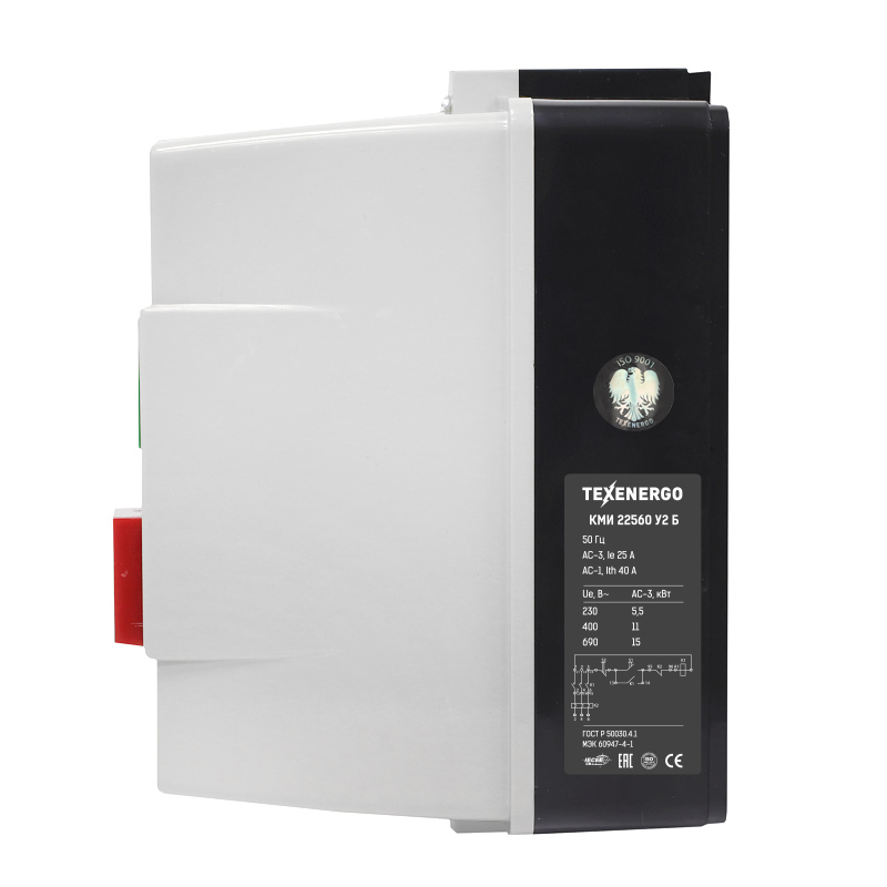 Малогабаритные контакторы переменного тока общепромышленного применения серии КМИ на ток нагрузки от 9 до 95 А предназначены для пуска асинхронных электродвигателей с короткозамкнутым ротором на напряжение до 660 В. Все исполнения на ток нагрузки до 40 А имеют одну группу замыкающих или размыкающих дополнительных контактов. Исполнения на ток нагрузки свыше 40 А - две группы (замыкающую и размыкающую). Контакторы позволяют дистанционно управлять цепями освещения, коммутировать трехфазные конденсаторные батареи и первичные обмотки трехфазных низковольтных трансформаторов. Контакторы серии КМИ применяются в системах управления ленточными конвейерами, компрессорами, насосами, кондиционерами, тепловыми печами, цепями освещения. Контакторы КМИ являются электромагнитными аппаратами переменного тока, магнитные системы которых разделены на две части: неподвижную, эластично закрепленную в основании из пластмассы, и подвижную с контактами для коммутации силовой цепи. Обозначение модели КМИ Х1 ХХ2 Х3 Х4 Х1 - габарит: 1 - (9, 12, 18 А), 2 - (25, 32 А), 3 - (40, 50 А), 4 - (65, 80, 95 А) ХХ2 - номинальный ток ( 09, 12, 18, 25, 32, 40, 50, 65, 80, 95 А ) Х3 - исполнение контактора: 1 - нереверсивный (без оболочки), 2 - нереверсивный с тепловым реле (без оболочки), 3 - реверсивный (без оболочки), 4 - реверсивный с тепловым реле (без оболочки), 5 - нереверсивный (в оболочке), 6 - нереверсивный с тепловым реле (в оболочке), Х4 - исполнение контакторов по дополнительным контактам (0-1н.о, 1-1н.з, 2-1н.о+1н.з)