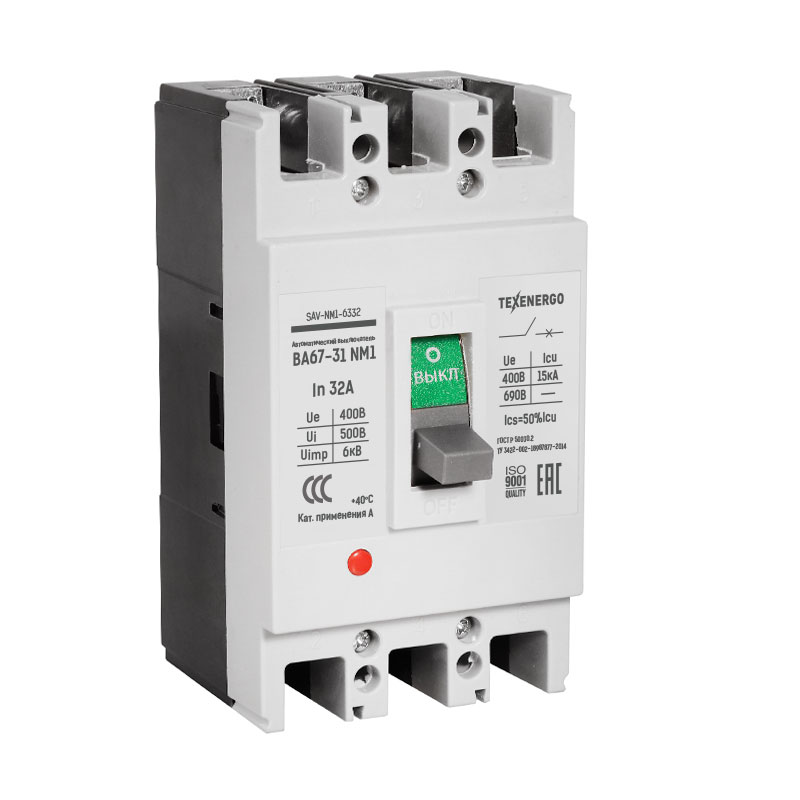 Выключатели серии ВА67 NM1 предназначены для проведения тока в нормальном режиме и отключения тока при коротких замыканиях, перегрузках, недопустимых снижениях напряжения, а также до 30 оперативных включений и отключений электрических цепей в сутки и раcсчитаны для работы в трехфазных сетях с напряжением 400/660 В частотой 50 Гц. Выключатели имеют семь типоисполнений на номинальные токи от 16 до 1600 А. Качественные и надежные силовые автоматы ВА67 NM1 могут быть использованы на производственных площадках и других объектах гражданского строительства, а также для установки в щитовом электрооборудовании производственных, общественных, торговых и жилых зданий.