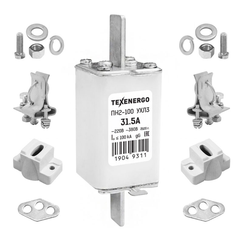 Предохранители плавкие серии ПН2 предназначены для защиты электрооборудования промышленных установок и электрических сетей трехфазного переменного тока с номинальным напряжением до 380 В частотой 50 и 60 Гц от токов перегрузки и КЗ. Предохранители допускают работу в трехфазных сетях переменного тока напряжением до 500 В частотой 50 и 60 Гц и до 220 В постоянного тока. Комплект поставки предохранителя ПН-2 ПН-2 необходимого номинала – 1 шт. Контакт основания необходимого номинала – 2 шт. Изоляторы А632 (керамика) – 2 шт. Пластина к изолятору А632 – 2 шт. Болт 6х25 для крепления изолятора – 4 шт. Шайба D6 для крепления изолятора – 4 шт. Гайка М6 для крепления изолятора – 4 шт. Гровер D6 для крепления изолятора – 4 шт. Предохранители поставляются в разобранном виде, комплектом.
