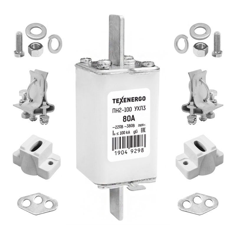 Предохранители плавкие серии ПН2 предназначены для защиты электрооборудования промышленных установок и электрических сетей трехфазного переменного тока с номинальным напряжением до 380 В частотой 50 и 60 Гц от токов перегрузки и КЗ. Предохранители допускают работу в трехфазных сетях переменного тока напряжением до 500 В частотой 50 и 60 Гц и до 220 В постоянного тока. Комплект поставки предохранителя ПН-2 ПН-2 необходимого номинала – 1 шт. Контакт основания необходимого номинала – 2 шт. Изоляторы А632 (керамика) – 2 шт. Пластина к изолятору А632 – 2 шт. Болт 6х25 для крепления изолятора – 4 шт. Шайба D6 для крепления изолятора – 4 шт. Гайка М6 для крепления изолятора – 4 шт. Гровер D6 для крепления изолятора – 4 шт. Предохранители поставляются в разобранном виде, комплектом.