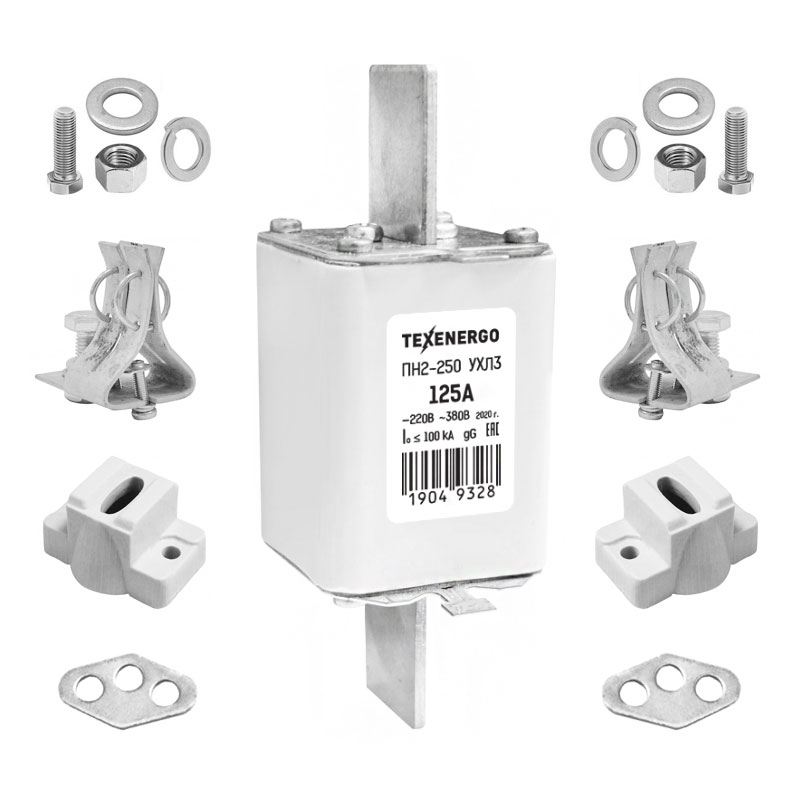 Предохранители плавкие серии ПН2 предназначены для защиты электрооборудования промышленных установок и электрических сетей трехфазного переменного тока с номинальным напряжением до 380 В частотой 50 и 60 Гц от токов перегрузки и КЗ. Предохранители допускают работу в трехфазных сетях переменного тока напряжением до 500 В частотой 50 и 60 Гц и до 220 В постоянного тока. Комплект поставки предохранителя ПН-2 ПН-2 необходимого номинала – 1 шт. Контакт основания необходимого номинала – 2 шт. Изоляторы А632 (керамика) – 2 шт. Пластина к изолятору А632 – 2 шт. Болт 6х25 для крепления изолятора – 4 шт. Шайба D6 для крепления изолятора – 4 шт. Гайка М6 для крепления изолятора – 4 шт. Гровер D6 для крепления изолятора – 4 шт. Предохранители поставляются в разобранном виде, комплектом.