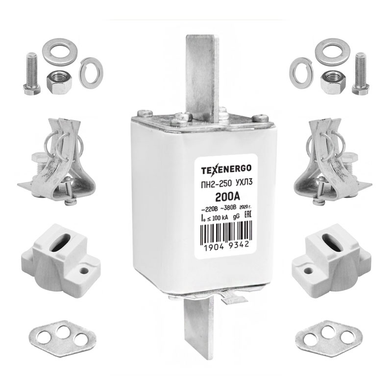 Предохранители плавкие серии ПН2 предназначены для защиты электрооборудования промышленных установок и электрических сетей трехфазного переменного тока с номинальным напряжением до 380 В частотой 50 и 60 Гц от токов перегрузки и КЗ. Предохранители допускают работу в трехфазных сетях переменного тока напряжением до 500 В частотой 50 и 60 Гц и до 220 В постоянного тока. Комплект поставки предохранителя ПН-2 ПН-2 необходимого номинала – 1 шт. Контакт основания необходимого номинала – 2 шт. Изоляторы А632 (керамика) – 2 шт. Пластина к изолятору А632 – 2 шт. Болт 6х25 для крепления изолятора – 4 шт. Шайба D6 для крепления изолятора – 4 шт. Гайка М6 для крепления изолятора – 4 шт. Гровер D6 для крепления изолятора – 4 шт. Предохранители поставляются в разобранном виде, комплектом.