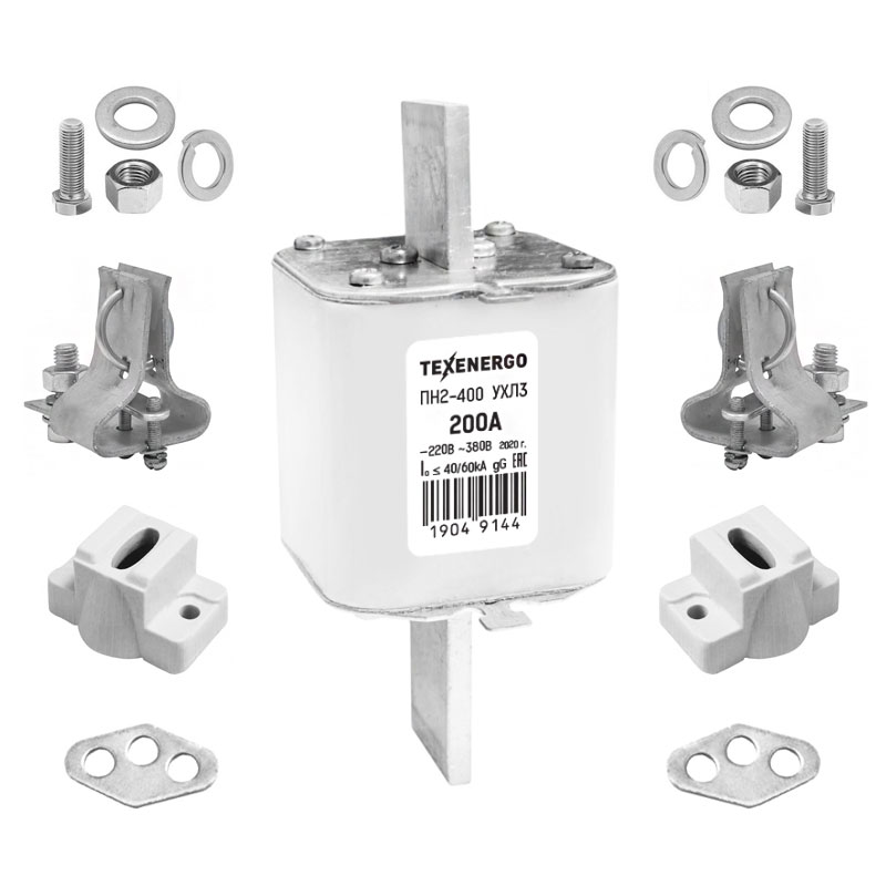 Предохранители плавкие серии ПН2 предназначены для защиты электрооборудования промышленных установок и электрических сетей трехфазного переменного тока с номинальным напряжением до 380 В частотой 50 и 60 Гц от токов перегрузки и КЗ. Предохранители допускают работу в трехфазных сетях переменного тока напряжением до 500 В частотой 50 и 60 Гц и до 220 В постоянного тока. Комплект поставки предохранителя ПН-2 ПН-2 необходимого номинала – 1 шт. Контакт основания необходимого номинала – 2 шт. Изоляторы А632 (керамика) – 2 шт. Пластина к изолятору А632 – 2 шт. Болт 6х25 для крепления изолятора – 4 шт. Шайба D6 для крепления изолятора – 4 шт. Гайка М6 для крепления изолятора – 4 шт. Гровер D6 для крепления изолятора – 4 шт. Предохранители поставляются в разобранном виде, комплектом.