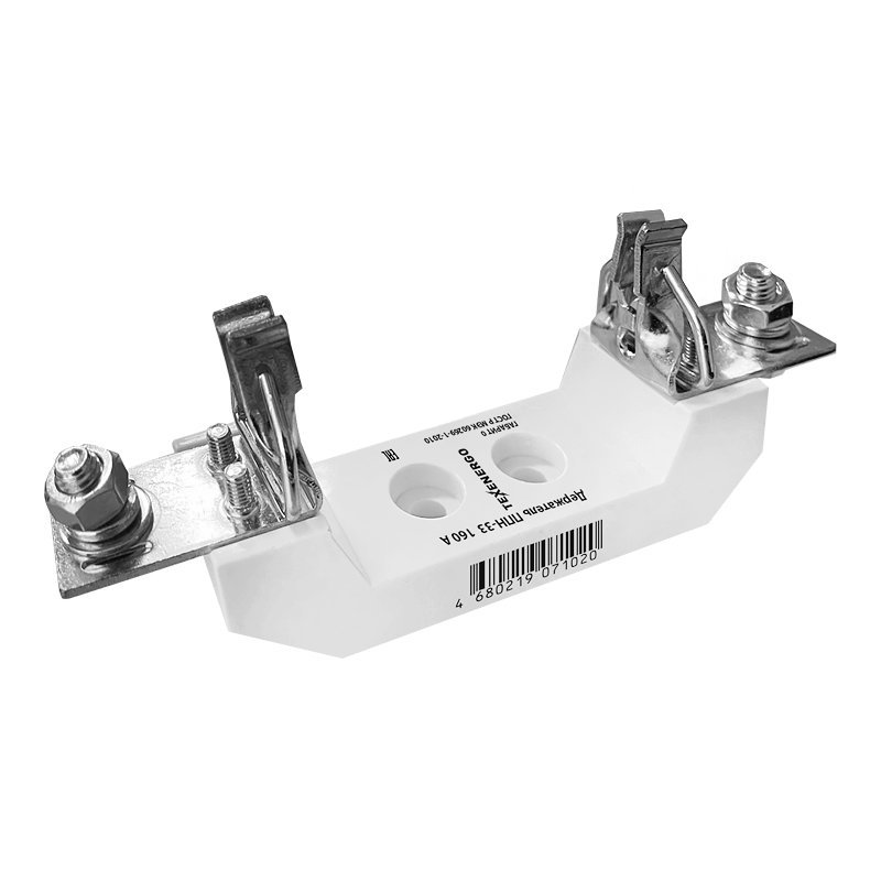 Основание держателя (изолятор) выполнено из армированной термореактивной пластмассы, стойкой к коррозии, механическим воздействиям, перепадам температуры и динамическим ударам, которые возникают при коротких замыканиях вплоть до 120 кА. Контакты плавкой вставки выполнены в форме ножа (заострены), что позволяет их устанавливать в держатели с меньшими усилиями.