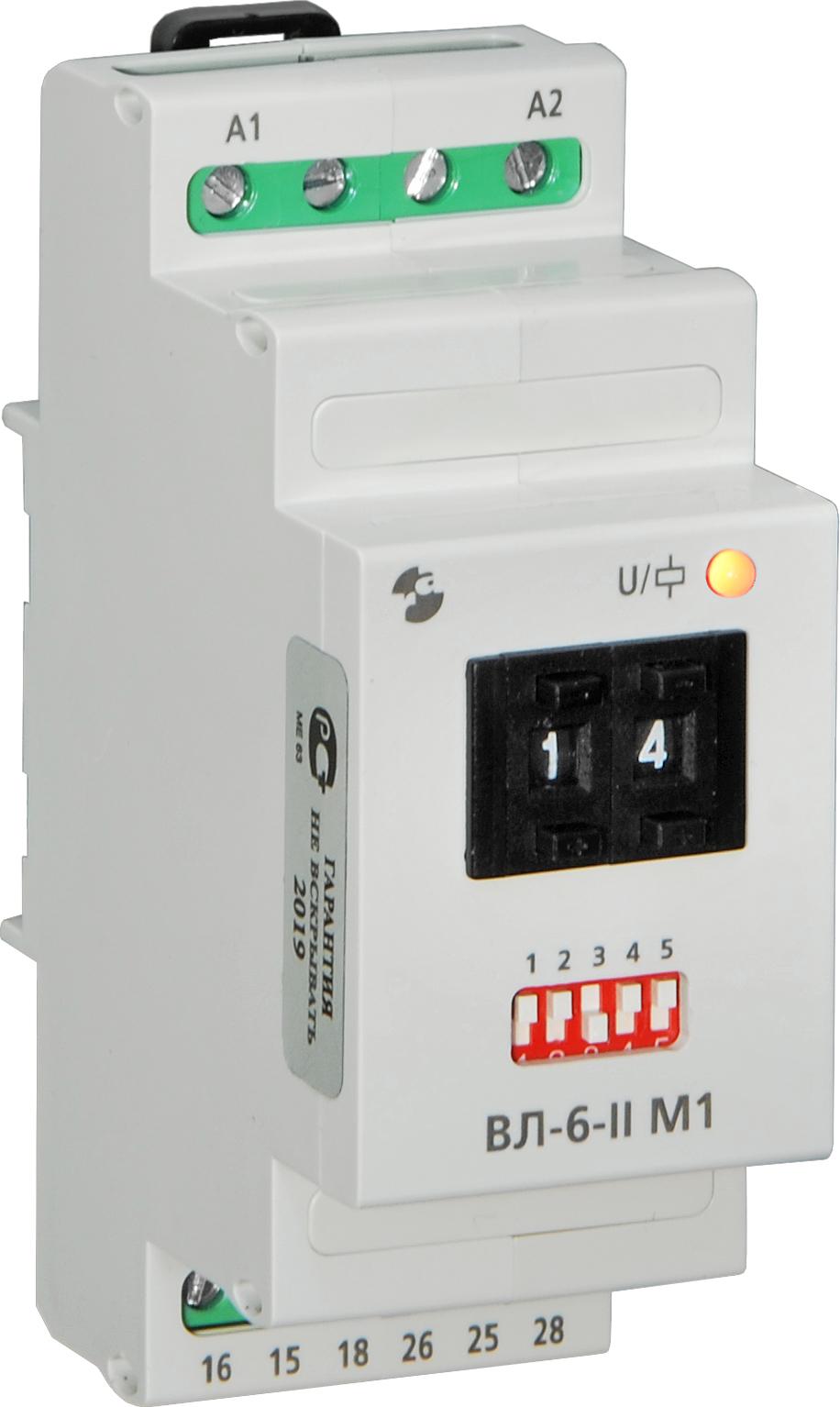 Реле времени ВЛ-6-II М1, ВЛ-6-III М1 являются многофункциональными устройствами с расширенным диапазоном питающего напряжения (24…220В). На передней панели устройства помимо двух (для ВЛ-6-II М1) или трёх (для ВЛ-6-III М1) секций нажимного переключателя задатчика временных интервалов, находится пятисекционный DIP-переключатель, используемый для выбора временных диапазонов и алгоритмов функционирования устройств. Реле выполнены на современной элементной базе. Питание осуществляется от источника напряжением 24…220В переменного или постоянного тока. Закрытые производственные помещения с искусственно регулируемыми климатическими условиями. Диапазонрабочих температур от -20 до +45°С. Воздействие вибраций с ускорением до 1g с частотой до 100Гц, до 2g с частотой до 60Гц. Воздействие по сети питания импульсных помех, не превышающих двойную величину напряжения питания и длительностью не более 10мкс. Окружающая среда взрывобезопасная, не содержащая пыли в количестве, нарушающем работу реле, а также агрессивных газов и паров в концентрациях, разрушающих металлы и изоляцию. Степень защиты реле IP40, выводных зажимов – IP20. Реле предназначены для монтажа на DIN-рейку и на плоскость.