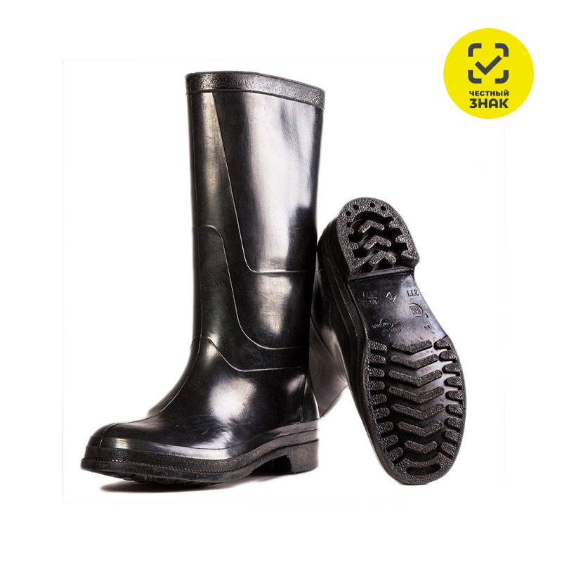 Сапоги изготавливаются из резиновых смесей методом формования на вулканизационных прессах, что обеспечивает высокие эксплуатационные характеристики и защитные свойства за счет монолитности конструкционных деталей (голенище, подошва, каблук, текстильная подкладка). Продукция соответствует всем требованиям ГОСТа и ТР ТС и предназначена для защиты ног от воды и общепроизводственных загрязнений. Защита соответствует 1 классу риска. Верх сапог выполнен из гладкой черной нелакированной резины. Внутренняя текстильная подкладка выполнена из трикотажной хлопчатобумажной трубки эластичного переплетения. Ходовые поверхности подошвы и каблука имеют рифленый рисунок для более прочного сцепления с грунтом. Высота рифов – 3,5 мм. Сапоги предназначены для эксплуатации в I-II климатических поясах до минус 9,7 ºС. Верх из нелакированной чёрной резины.Высота 38-40 см. Уважаемые клиенты! Начиная с 1 июля 2020 года становится обязательной продажа обуви с маркировкой (Постановление Правительства РФ от 5 июля 2019 г. № 860). Чтобы работать в 2020 году по новым правилам, необходимо стать участником системы маркировки обуви. Для этого потребуется зарегистрироваться в ЦРПТ «Честный ЗНАК». Нарушение закона повлечет за собой соответствующие санкции, которые установлены для всех участников товарооборота. При этом наказание понесут не только реализаторы, но и производители, импортёры и даже покупатели обуви.